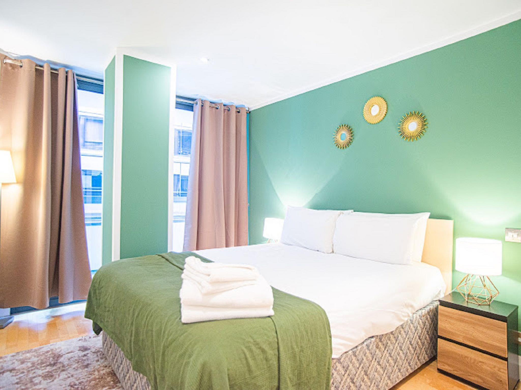 Modern apartment block "Saffron Hill, Farringdon". In the centre of London, in a central position. In the complex: WiFi, lift, central heating system, laundry (extra). Room cleaning weekly (included). (extra). Grocery, bar 100 m, railway station "Old Street" 2 km, underground station "Old Street" 2 km. Nearby attractions: Barbican Cultural Centre 3 km, St. Paul‘s Cathedral / Tate Modern 3 km, Buckingham Palace 6 km, Piccadilly Circus 6 km, Tower of London & London Bridge 5 km, London Eye 3 km. Please note: suitable for families, baby equipment on request (extra), childminding (extra). The photograph shows a typical example.