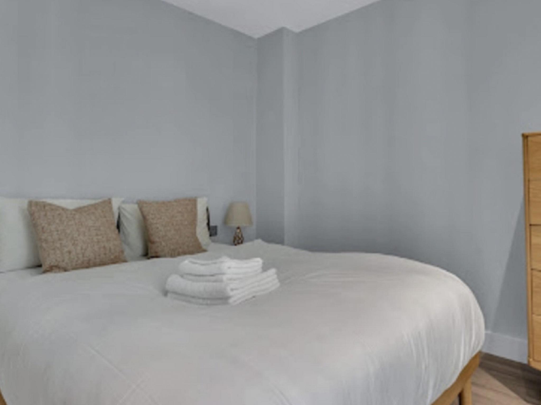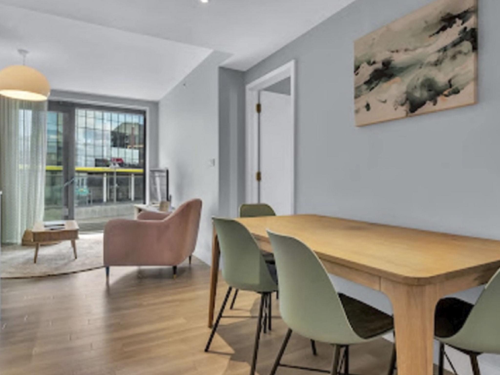 Modern apartment block. In the centre of Wembley Park, in the district Brent, North West London, excellent location: right in the centre but still quiet, traffic calmed area. In the complex: reception, lounge, internet access, fitness room (extra). Roof terrace, central heating system, washing machine, tumble dryer. Room cleaning weekly (included). Public car park, extra. Shop, grocery, supermarket 350 m, shopping centre 300 m, restaurant 380 m, bar 200 m, bakery 200 m, café 100 m, pub garden 200 m, bus stop "Wembley Arena" 200 m, railway station "Liverpool Street Station" 15 km, underground station "Wembley Park Station" 570 m. Nearby attractions: Wembley Stadium 200 m, Wembley Designer Outlet 500 m, Wembley Arena 200 m. Please note: baby equipment on request (extra). Object suitable for 4 adults. The apartment is located in a zone with limited traffic. The photograph shows a typical example. The holiday properties may differ in living space, floorplan, equipment and furnishing.