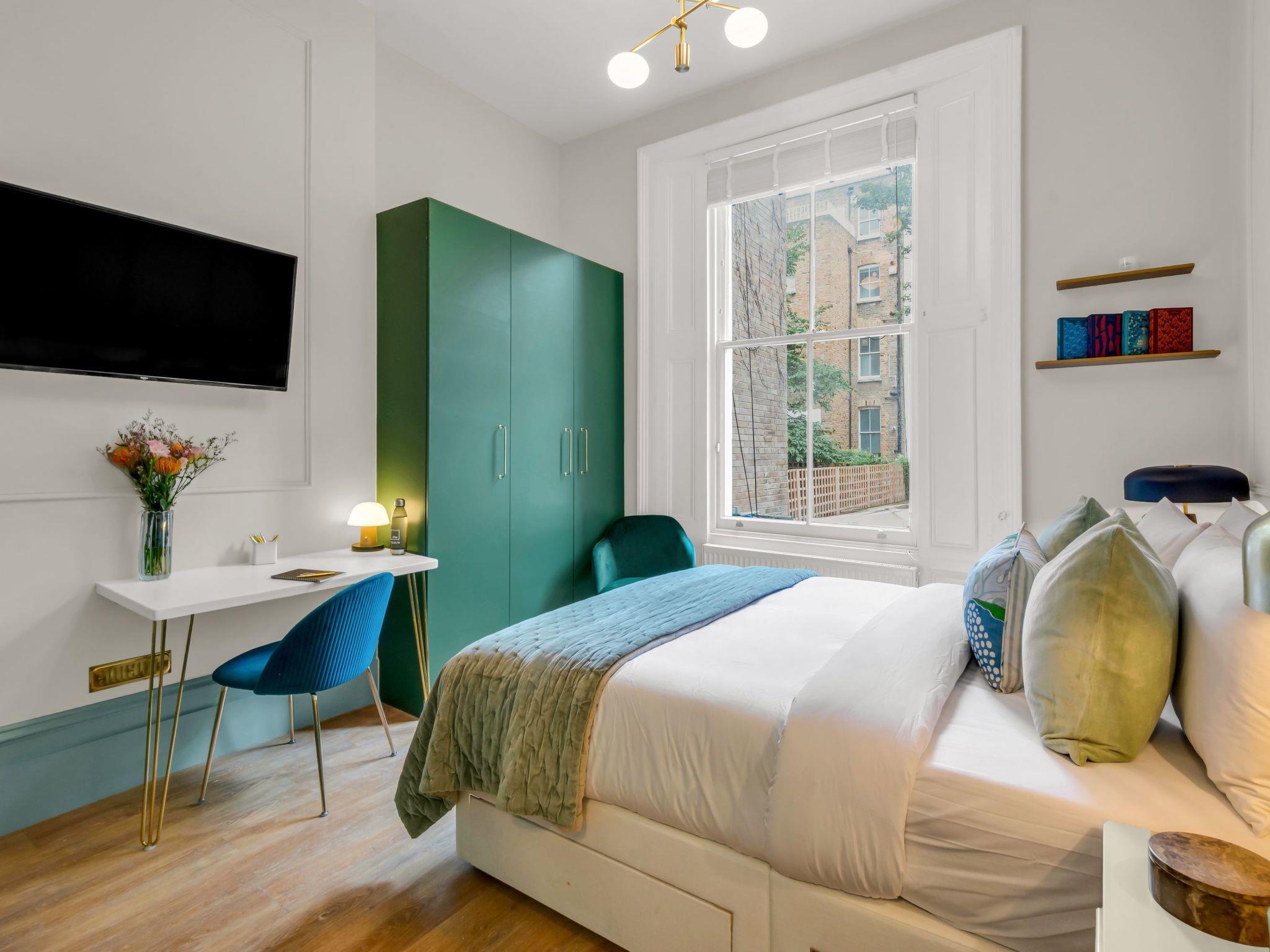Modern residence. In the district West London, in a quiet position in the residential district. In the house: central heating system, washing machine, tumble dryer (for shared use). Shop, grocery, supermarket, café 100 m, bus stop "West Brompton Station" 40 m, underground station "West Brompton Station" 90 m. Nearby attractions: Kensington Gardens 2 km, Science Museum 2 km, Natural History Museum 1.2 km, Victoria & Albert Museum 1.5 km, Kensington Palace 2 km. Please note: the photograph shows a typical example. The holiday properties may differ in living space, floorplan, equipment and furnishing.