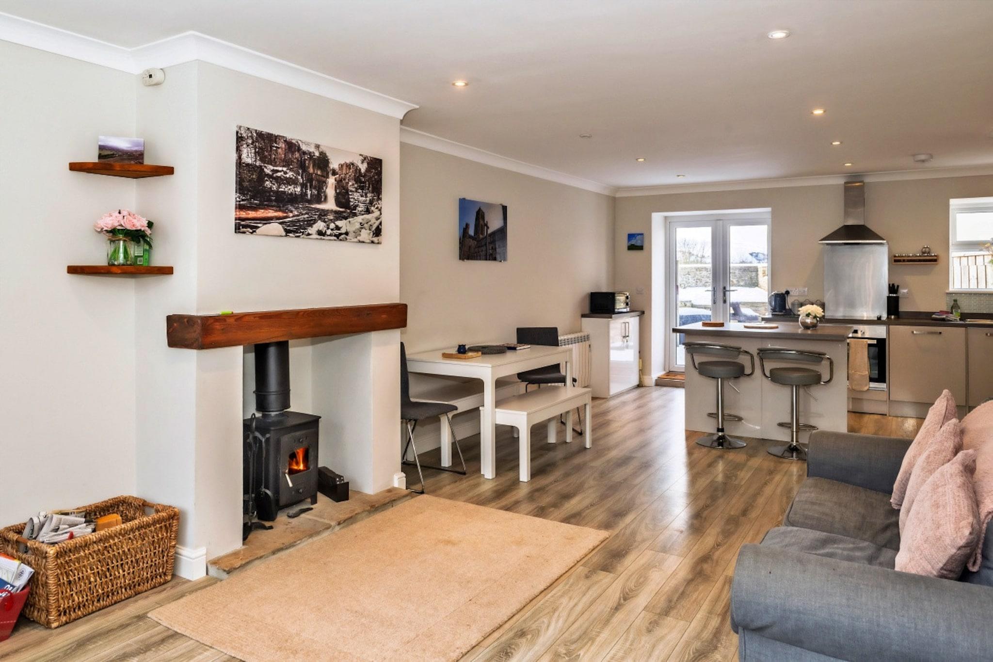 Escape to Bleabeck View, a charming 3-bedroom terraced house offering the perfect combination of cosy living and stunning views over the unspoiled natural countryside. Located in Middleton-in-Teesdale, this peaceful retreat is ideal for families, small groups, or those seeking a quiet getaway. With space for up to 2 well-behaved dogs, it's also pet-friendly for your furry companions. Inside, the property features three comfortable bedrooms, including two spacious double rooms and a twin bedroom, making it ideal for families or small groups. The open-plan kitchen and living area creates a welcoming space for both cooking and relaxation, while the kitchen is fully equipped with all the necessary appliances. The living area provides ample seating, perfect for unwinding after a day of exploring the countryside. The property also includes a main bathroom, as well as an ensuite shower room for added privacy and comfort. Step outside into the large garden area, where you can relax at the picnic bench while taking in the breathtaking panoramic views of Harter Fell and the surrounding countryside. It’s the perfect spot to enjoy a meal al fresco or unwind with a drink. Bleabeck View is ideally located for exploring the natural beauty of the area, with spectacular waterfalls such as High and Low Force and Bleabeck Falls nearby, particularly impressive after rainfall. You can also visit local landmarks like Barnard Castle and Raby Castle, as well as further attractions including Richmond Castle and Bamburgh Castle along the Northumberland coast. Whether you're looking to explore nature or relax in a tranquil setting, Bleabeck View provides the perfect base for an unforgettable stay.