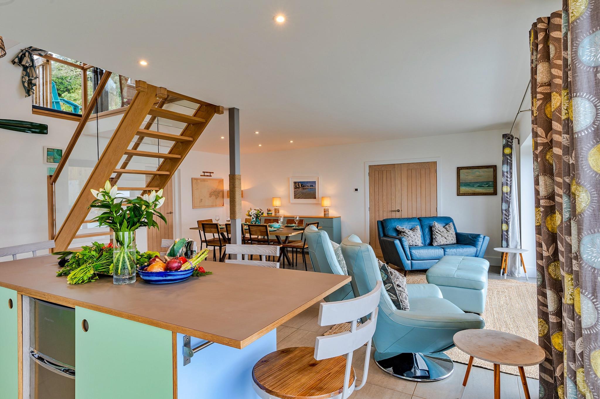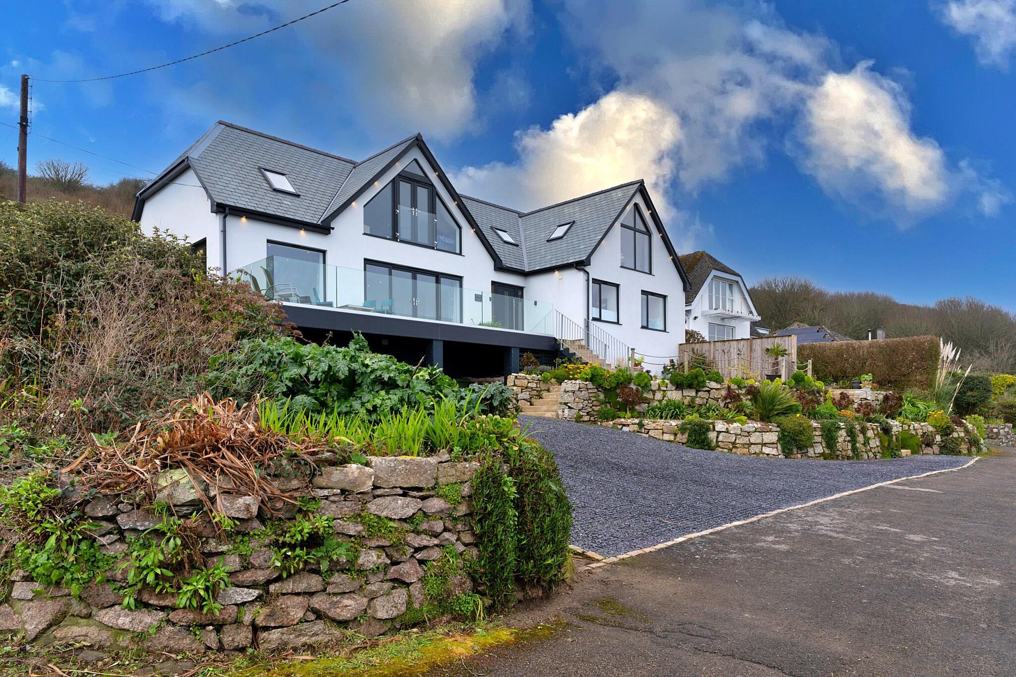 Perched on the stunning cliffside near the picturesque village of Mousehole, this exquisite beach house offers an unrivaled coastal living experience. With its expansive glass frontage, guests are treated to breathtaking, panoramic sea views that stretch across Mount’s Bay, providing a constant backdrop of ever-changing natural beauty. Each room is designed to maximize this remarkable vista, allowing the serene sounds of the sea and the gentle breeze to weave seamlessly into your stay. The open-plan kitchen and dining area serve as the heart of the home, filled with natural light, making it an ideal space for entertaining. With a spacious breakfast bar and a large dining table that accommodates up to eight guests, it’s perfect for leisurely meals and long conversations. The upper lounge area, adorned with comfortable sofas and local artwork, invites relaxation as you soak in the sweeping coastal views, creating a harmonious blend of comfort and elegance. Outside, the beach house boasts generous outdoor spaces, including a stunning terrace that invites you to enjoy the sun while overlooking the sparkling sea. Here, you can dine al fresco, watch the sunset, or simply unwind in the beautifully landscaped garden, replete with unique Cornish flora. With the charming harbor of Newlyn and the vibrant town of Penzance only a short distance away, this luxury retreat serves as the perfect base for exploring the enchanting coastline, ensuring an unforgettable getaway filled with relaxation and adventure.