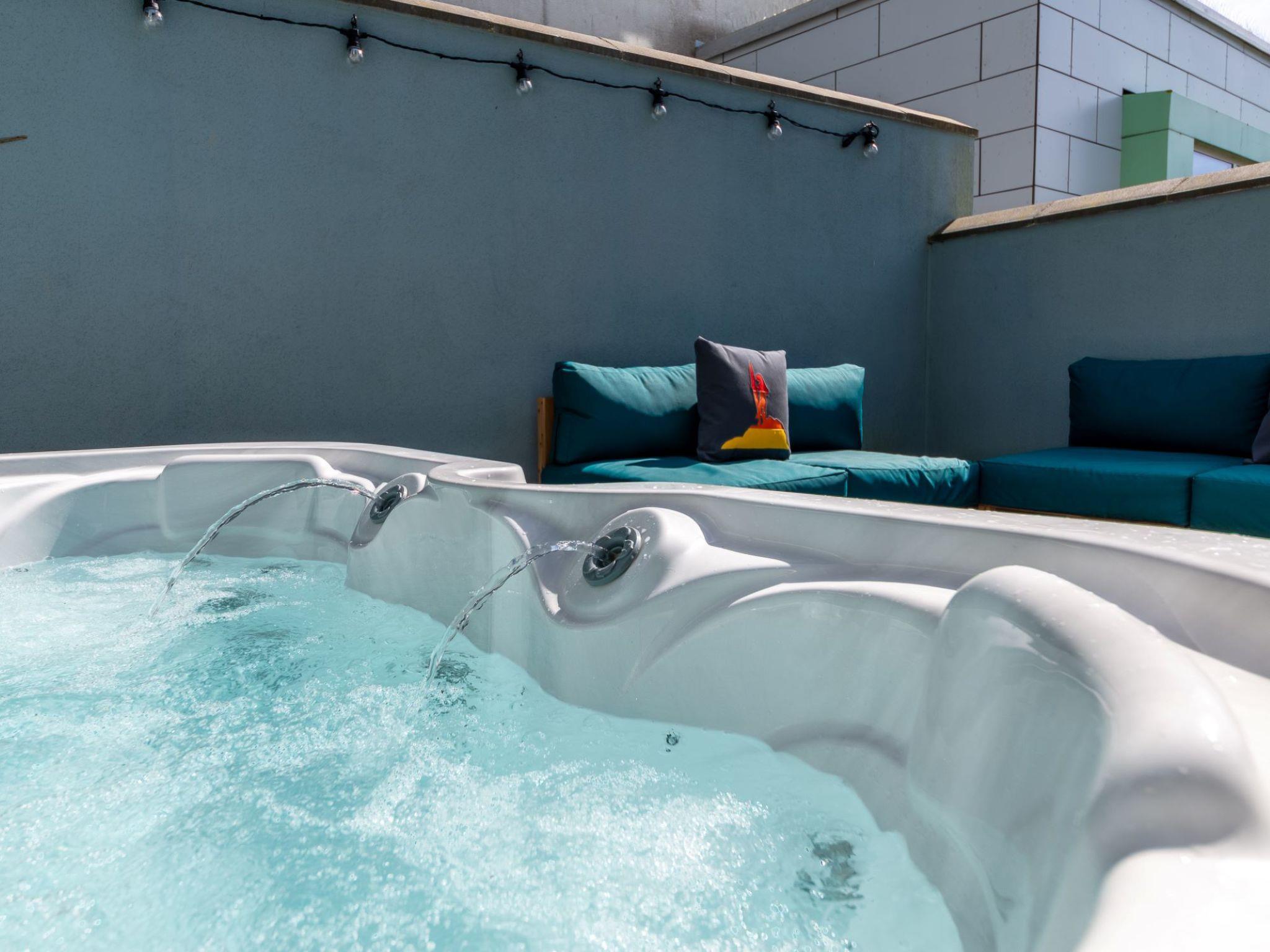 "The Old Chapel", 14-room house 428 m2. Object suitable for 20 adults. Spacious and bright, fully renovated, luxurious and stylish furnishings: 10 large double bedrooms, each room with 1 double bed and TV (flat screen). 4 showers/WC, 2 sep. WC's, 3 Baths/showers/WC. Upper floor: open living room with TV (flat screen). Small living room. Large, open kitchen (oven, dishwasher, 4 ceramic glass hob hotplates, toaster, kettle, microwave, freezer) with dining table. Large terrace. Terrace furniture. Partial view of the town. Facilities: washing machine, hair dryer. Internet (WiFi, free). Parking (3 cars) at the house. E-charging station. Please note: smoke alarm, fire extinguisher. No internal connecting door between the separated properties. Premium coastal living in central Newquay, featuring a collection of three properties, two with own private hot tub.