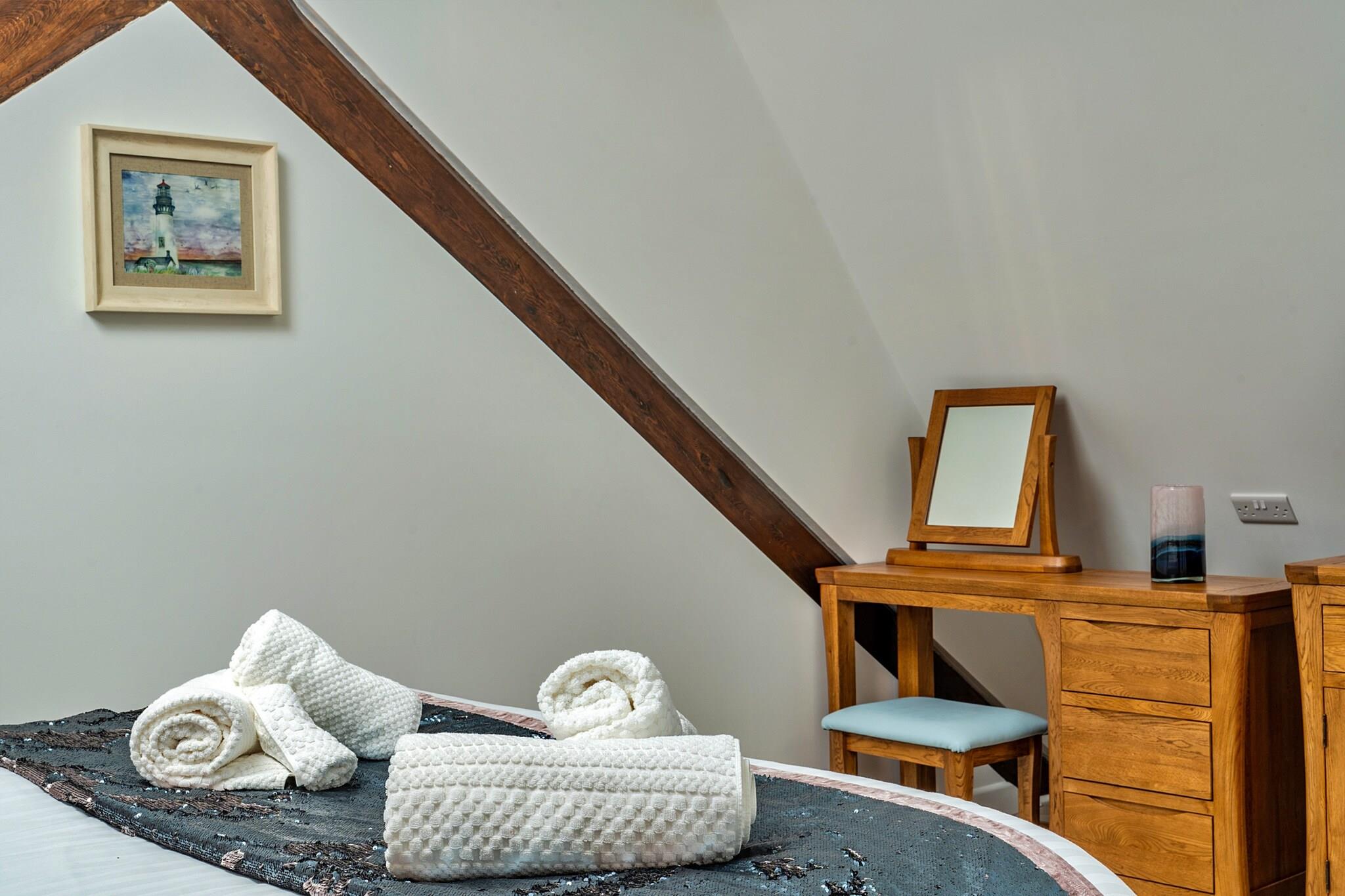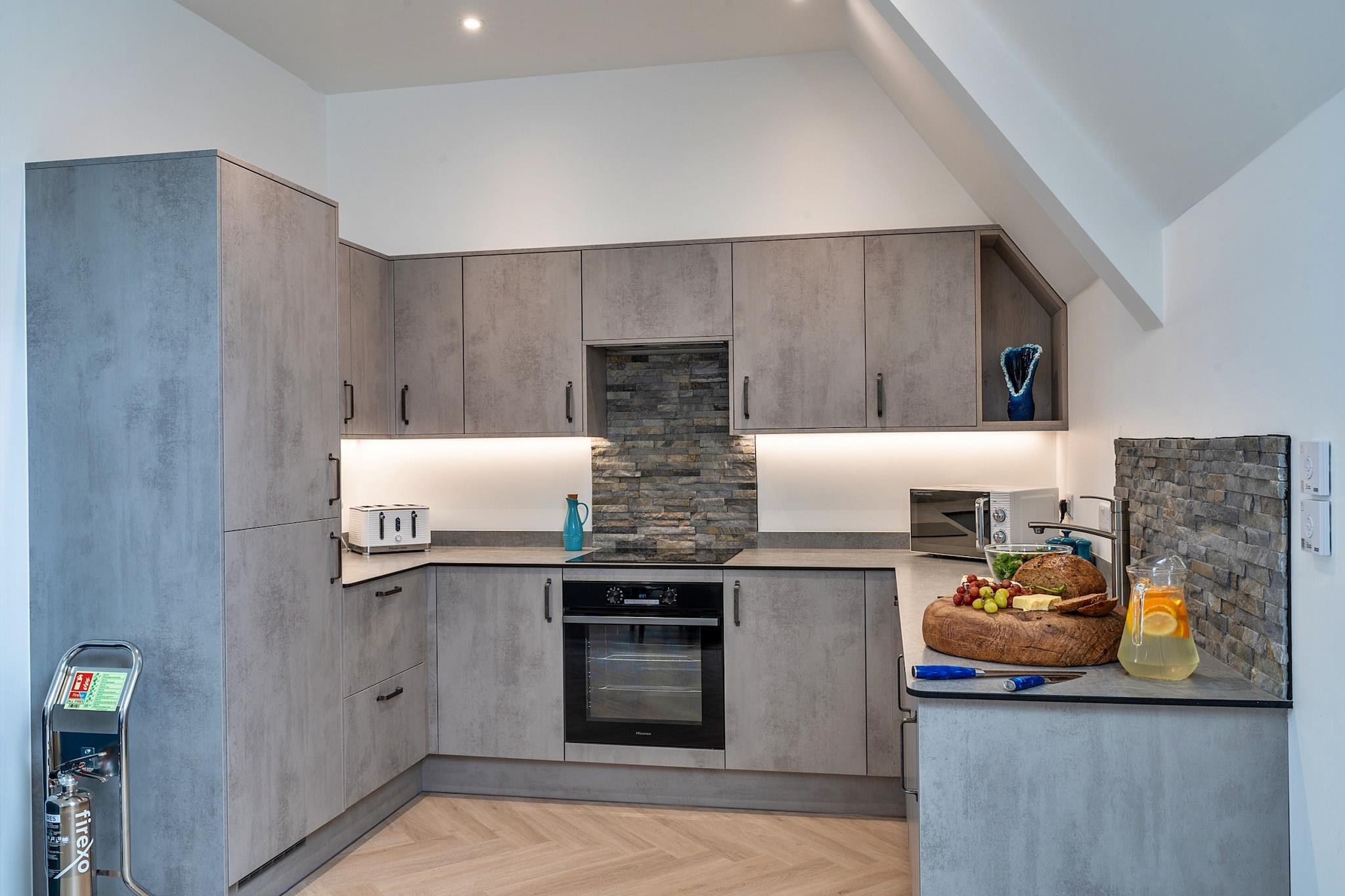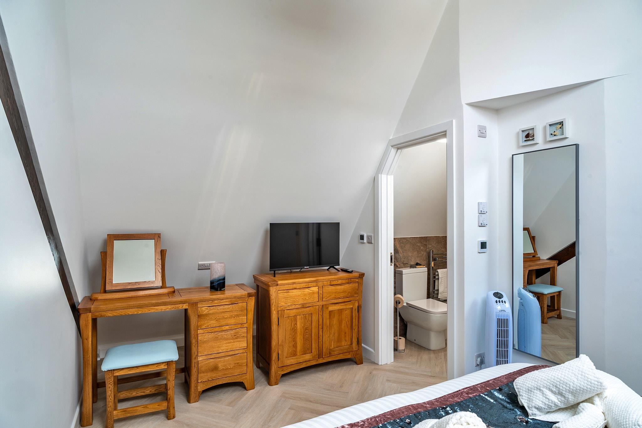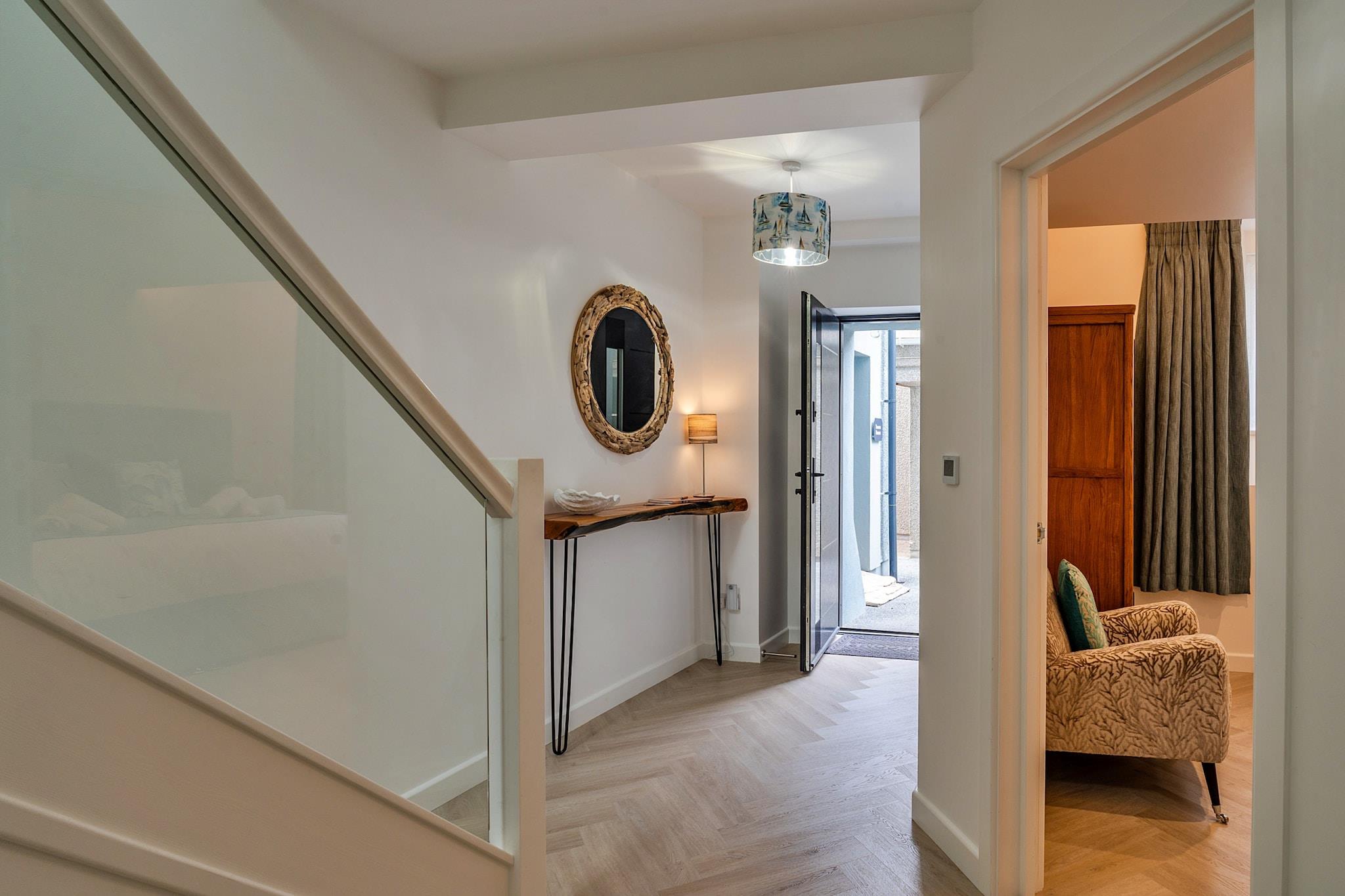 Welcome to this stunning modern chapel conversion in the heart of Newquay, where contemporary luxury meets coastal charm. Just 200 meters from the golden sands of Towan Beach, this exquisite oasis is one of three beautifully crafted holiday properties, designed to offer both indulgence and comfort for families, couples, and groups seeking a memorable Cornish escape. Upon entering this remarkable retreat, you'll discover two sumptuous super-king size zip-and-link bedrooms on the ground floor, each thoughtfully equipped with a smart TV and ensuite bathroom to ensure your comfort and privacy. Ascend the striking glass-panelled staircase to find an expansive open-plan lounge and kitchen on the first floor. This sleek, fully equipped kitchen is a culinary delight, perfect for creating family meals or snacks to enjoy in the lovely dining area. A third super-king size bedroom awaits on the top floor, featuring a spacious ensuite, an enchanting oak-beamed wall, a smart TV, and a stylish dressing table. For added flexibility, the super-king beds can be arranged as singles upon request, accommodating the needs of your group. Step outside to your private enclosed patio, where you'll find comfortable garden furniture and a luxurious six-seater hot tub, perfect for unwinding after a day of exploration. This little slice of paradise is pet-friendly, welcoming your furry companions to join in the fun, and ensuring that everyone enjoys the beauty of coastal living. Convenience abounds with an on-site EV charger, making it easy for you to explore the breathtaking nearby attractions. The vibrant heart of Newquay is brimming with amenities, including delicious restaurants, lively bars, and a cinema, all just a leisurely stroll away. Fistral Beach, renowned for its surf culture, is less than a mile from your door, while more picturesque coastal walks await in Crantock and beyond. With beach towels and robes provided, you're all set to indulge in the coastal lifestyle. This modern retreat is a sanctuary of serene luxury designed for an unforgettable adventure in Cornwall.
