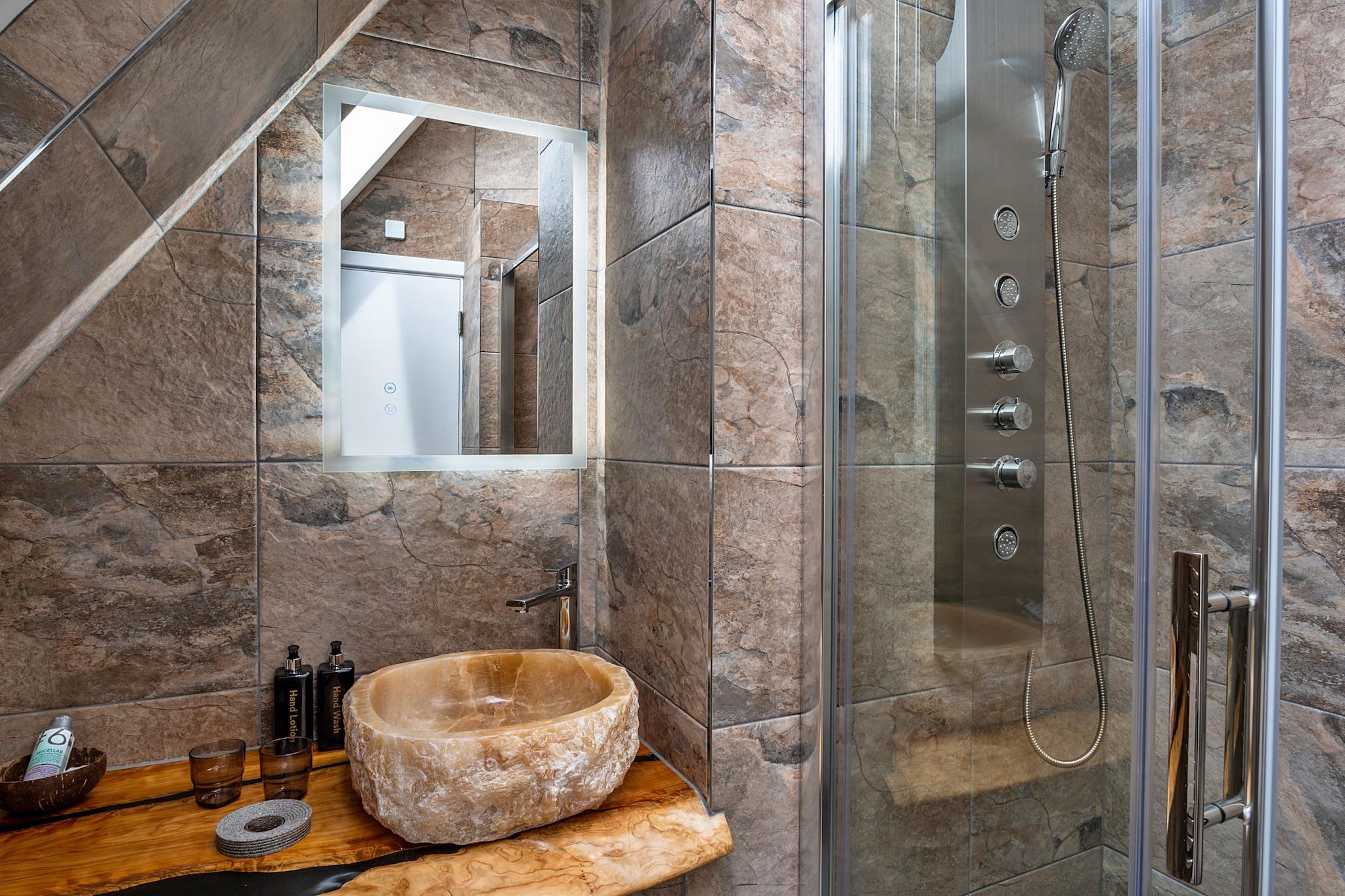 Ground floor: (Bedroom with bathroom(double king size bed, shower), Bedroom with bathroom(double king size bed, shower), Internet access) On the 1st floor: (open kitchen(electric kettle, toaster, oven, microwave, dishwasher, fridge, freezer, dishes and cutlery), Living/diningroom(TV, dining table, seating area), Bedroom with bathroom(double king size bed, bath tub)) Garden Furniture , tumble dryer, hot tub, washing machine, heating, parking, hairdryer, Charging post for electric cars