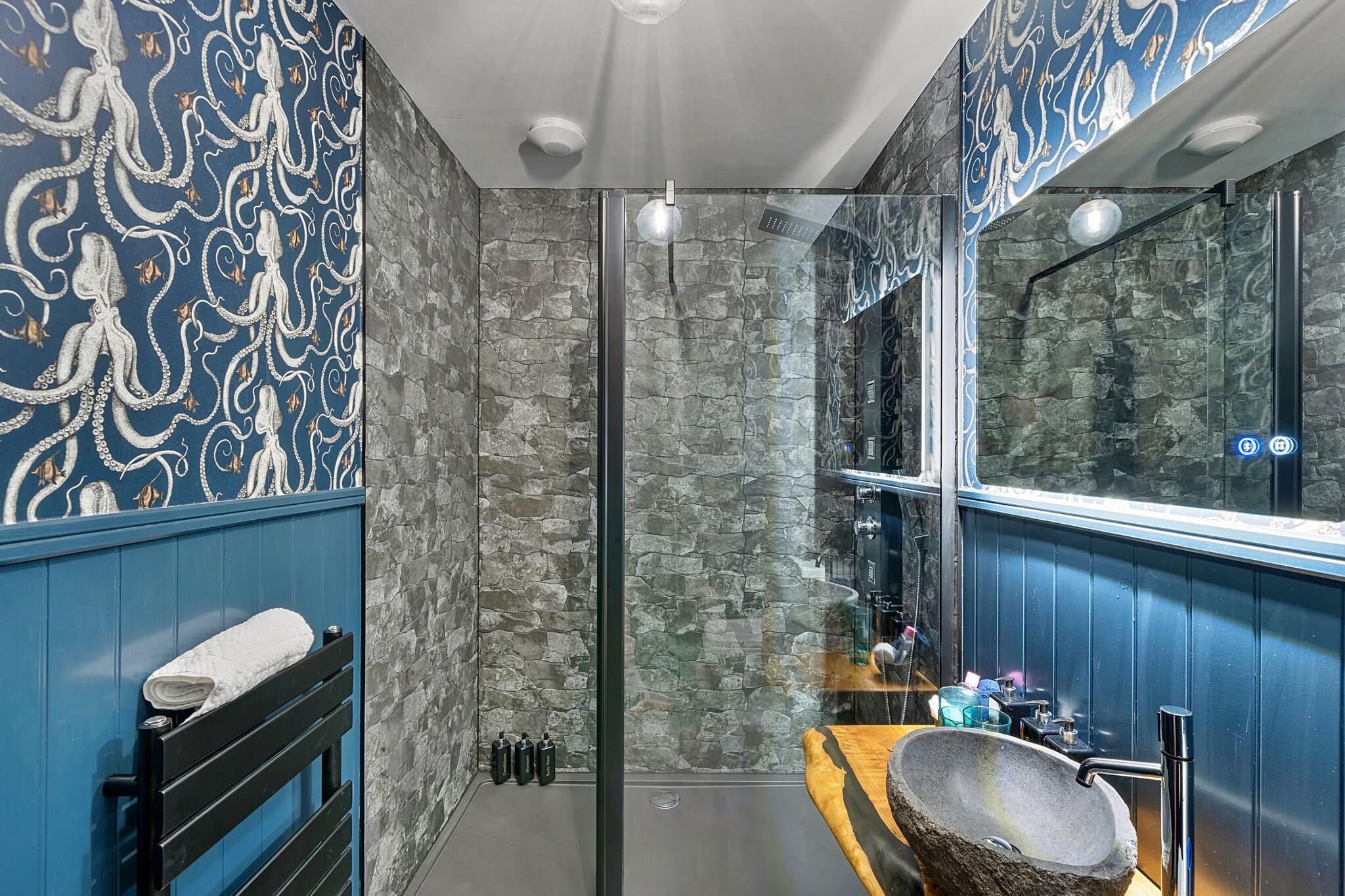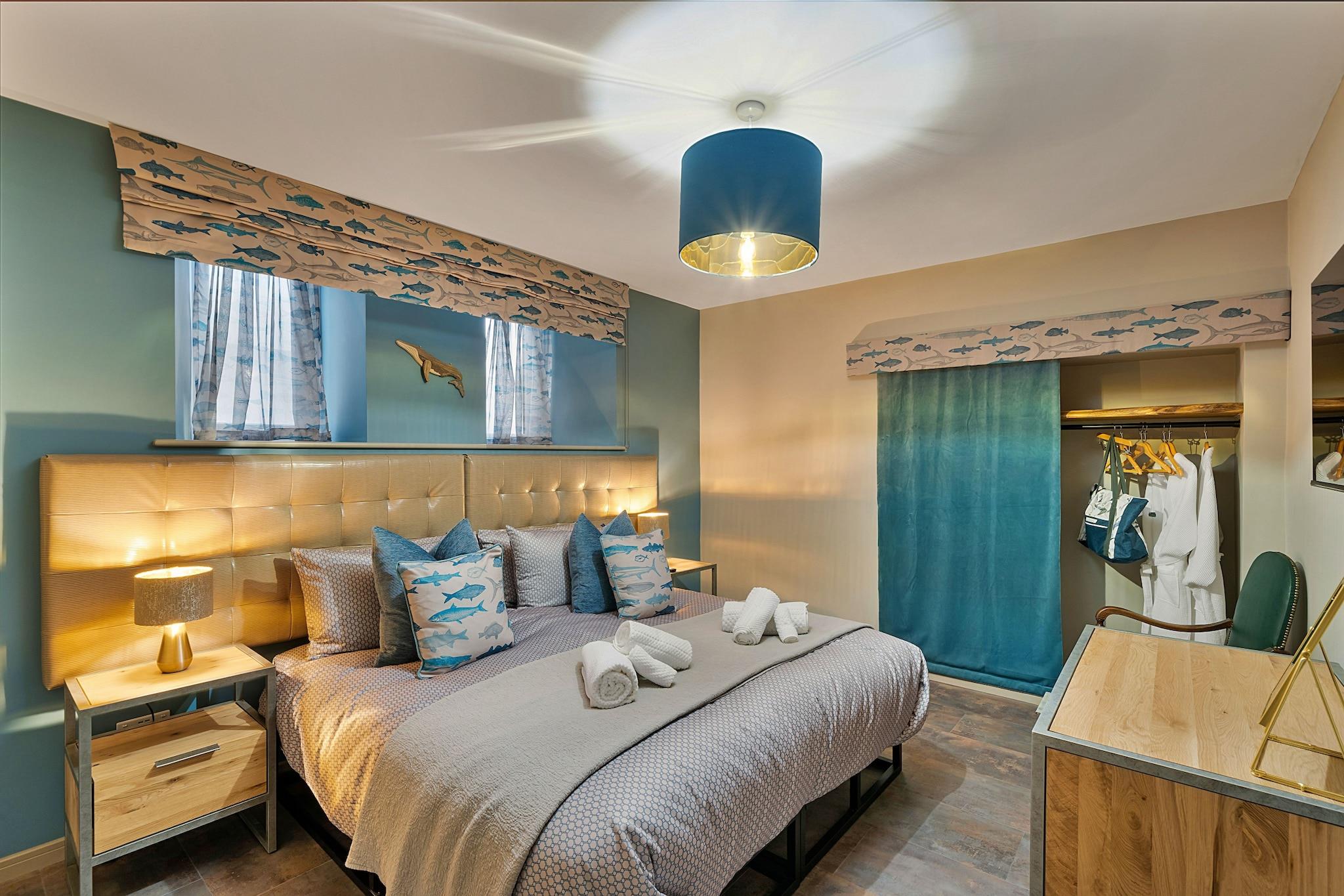 Welcome to your luxurious escape at Towan House, a stunning chapel conversion in the vibrant heart of Newquay. This exquisite property blends modern elegance with historic charm, making it the perfect retreat for families, couples, and groups seeking an unforgettable Cornish getaway. Inside, three spacious ground-floor bedrooms each feature their own smart TV, ensuring comfort and privacy. Indulge in chic bathrooms, including a stylish space with a bespoke river rock stone sink and a lavish shower room boasting a 1.6-meter-wide enclosure and an opulent onyx basin. Ascend the grand staircase adorned with a bespoke chandelier to find a spacious open-plan lounge and fully equipped kitchen, ideal for self-catering stays. The fourth bedroom on this level offers a lavish arched headboard and a smart TV. Step outside to discover a large, privately enclosed patio area perfect for outdoor relaxation complete with garden furniture and a sumptuous 7-seater hot tub for soaking under the stars. Just a 5-minute stroll takes you to Towan Beach, while Fistral Beach is less than a mile away, giving you easy access to sandy shores and seaside fun. Enjoy the nearby amenities, including restaurants, bars, and shops, or venture out for picturesque walks in Newquay and Crantock. Your stay is made even more convenient with included beach towels and robes, and a travel cot and highchair available upon request. With private parking for one vehicle and an EV charger on-site, Towan House caters to all your needs. Relax in four well-appointed bedrooms, two super-king-size zip-and-link (convertible to twins) and two king-size options.