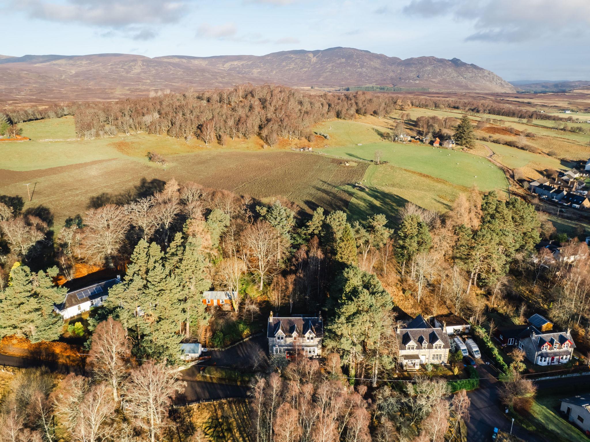 Large, cosy villa "Netherwood", 2 storeys, detached. On the outskirts, 600 m from the centre of Newtonmore, 12 km from the lake, 39 km from the skiing area. Private: garden with flowers and trees. Terrace, garden furniture, parking (for 3 cars) at the house. Shop, supermarket 800 m, restaurant 1 km, bar 1 km, café 1 km, bus stop "Craigdhu Road" 350 m, railway station "Newtonmore" 1.6 km. Golf course (18 hole) 800 m. Nearby attractions: Newtonmore Golf Club 800 m, Cairngorms National Park, Highland Folk Museum 1.6 km, Inverness 73 km, Highland Wildlife Park 12 km, Landmark Adventure Park 35 km. Well-known ski regions can easily be reached: Cairngorms ski resort 38 km, The Lecth Ski resort 80 km. Well-known lakes can easily be reached: Loch Insh 16 km, Loch Morlich 33 km, Loch Garten 39 km. Please note: baby equipment (included).