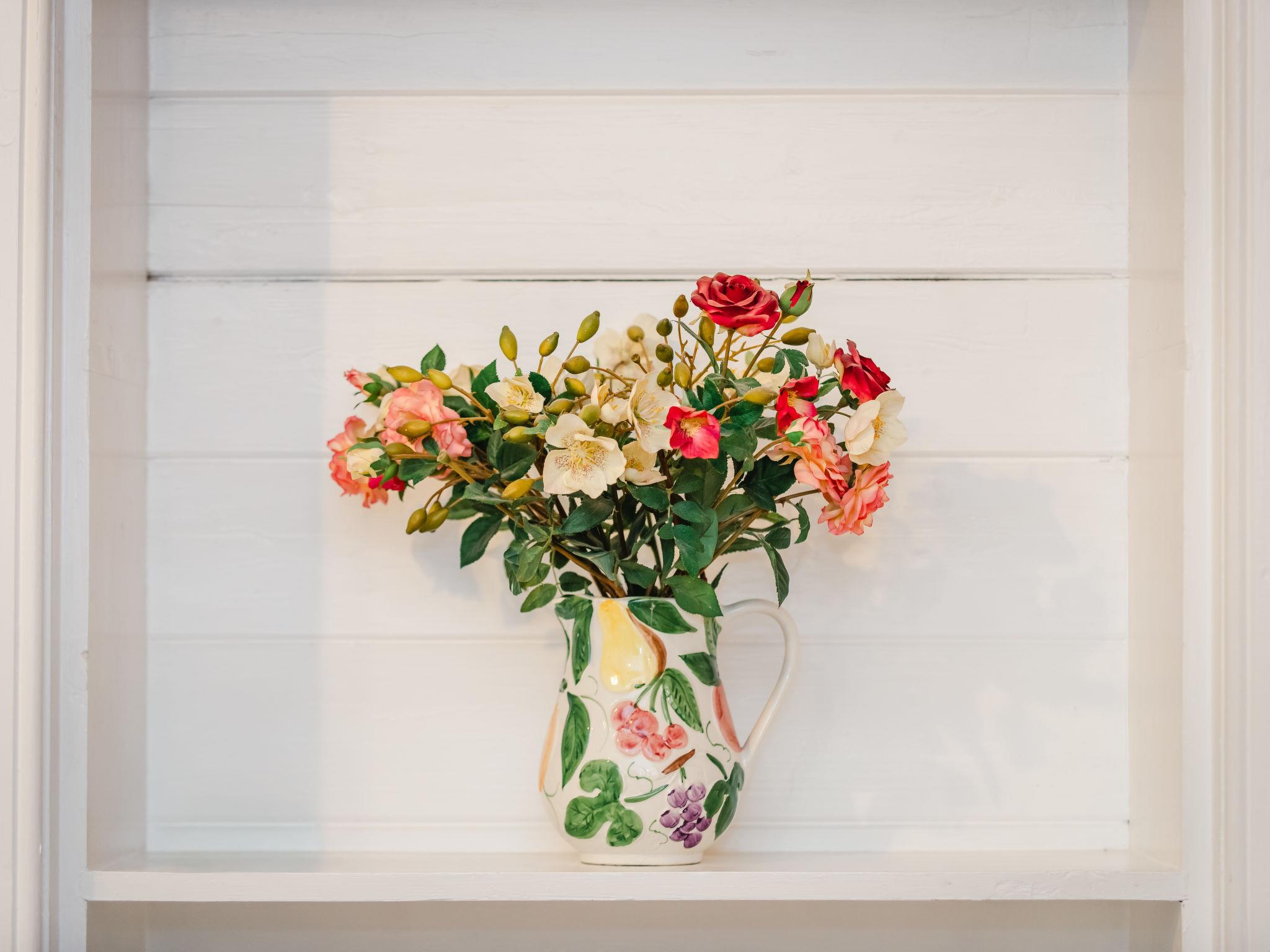 8-room house 215 m2 on 2 levels. Spacious, comfortable and cosy furnishings: large living room with open-hearth fireplace and satellite TV (flat screen), CD-player and DVD. Large dining room with dining table. 1 double bedroom with 2 beds. Large kitchen (4 hot plates, oven, dishwasher, toaster, kettle, microwave, freezer, combination microwave). Shower/WC. Upper floor: 2 large double bedrooms, each room with 1 double bed. 1 large double bedroom with 2 x 2 bunk beds. 1 double bedroom with 2 beds. 1 small room with 1 bed. Bath/shower/WC. Heating. Garden. Terrace furniture. Facilities: washing machine, dryer, iron, children's high chair, baby cot for up to 2 year olds, hair dryer. Internet (WiFi, free). Parking. Please note: non-smoking house. Maximum 2 pets/ dogs allowed. TV only EN. Smoke alarm. Ground floor twin bedroom can be made into a double bed. *Maximum occupancy is 10 (plus infants)*. HI-70196-F