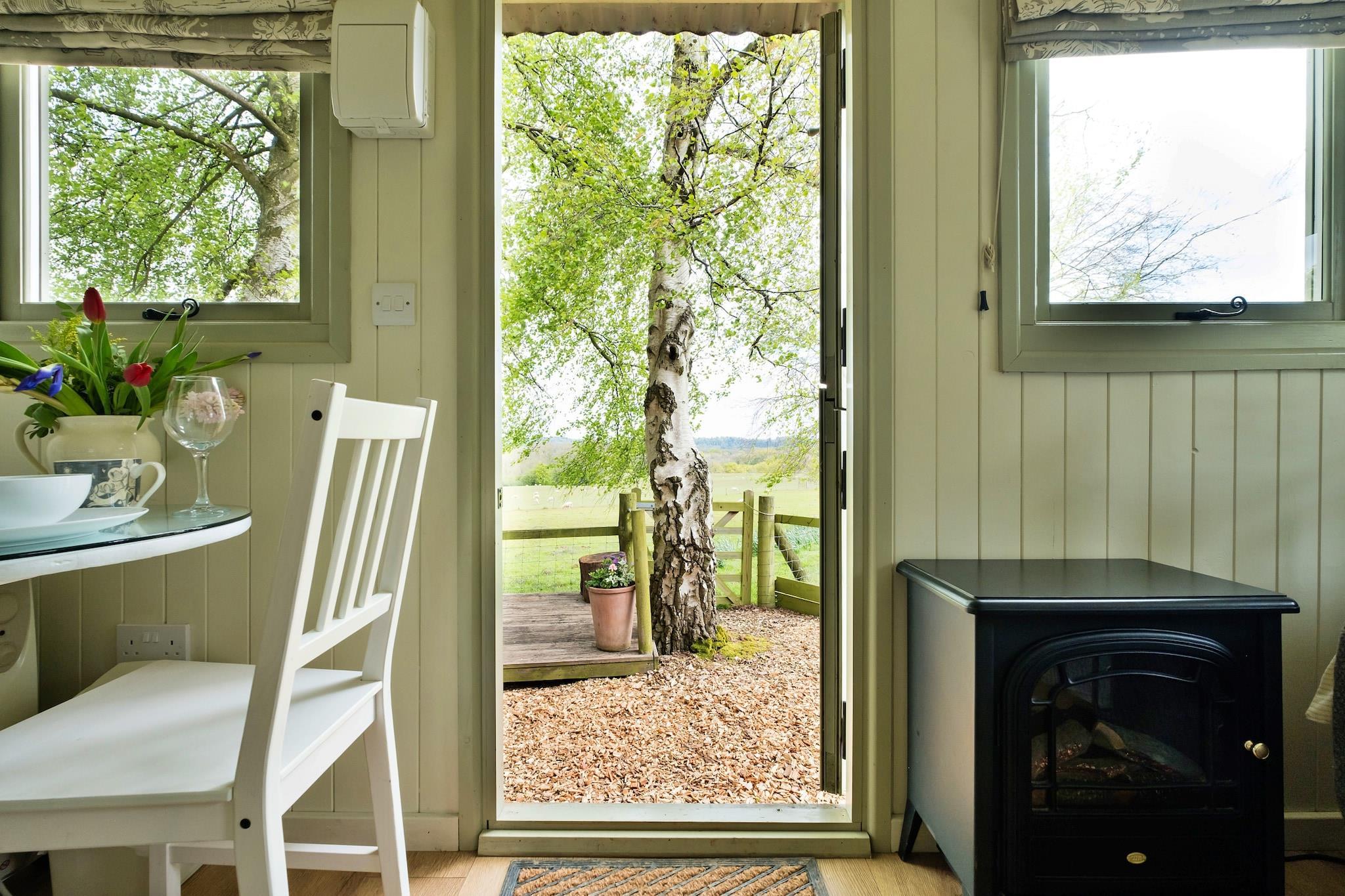 This luxurious glamping retreat offers a cozy, intimate stay in a beautifully located shepherd's hut. Ideal for two, it features a comfortable double bed with bed linen, an electric wood burner, and a small kitchen area equipped with a Belfast sink, fridge, microwave/combi oven, and a plug-in induction hob. The space is well-equipped with a TV, free Wi-Fi, and a private shower room with heated towel rail and towels, providing all the comforts of home in a picturesque setting. Nestled in an idyllic countryside location near Bridgnorth, guests can unwind on the private outdoor seating area while enjoying stunning views of the surrounding fields, woodland, and water. The tranquil environment is perfect for nature walks or simply relaxing in the serene surroundings. The accommodation also includes an outdoor BBQ, ideal for alfresco dining under the open sky. Convenient amenities such as parking, internet access, and heating are included, ensuring a comfortable stay. The shepherd’s hut offers the perfect getaway for couples looking to escape the hustle and bustle and experience the beauty of nature in a luxurious, rustic setting.