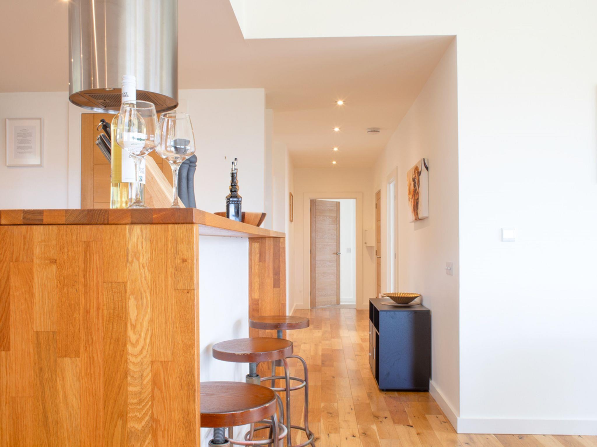 "Salt Cottage", 4-room cottage 154 m2. Very comfortable and tasteful furnishings: open living/dining room with sliding door, panoramic window with kitchen corner and TV (flat screen), DVD and wood-burning stove. Exit to the terrace. 1 large double bedroom with 1 double bed, bath/shower/WC and TV (flat screen), DVD. Exit to the terrace. 1 double bedroom with shower/WC. 1 room with 2 beds and bathroom. Kitchen-/living room (oven, dishwasher, 4 ceramic glass hob hotplates, toaster, kettle, microwave, freezer, cooking island) with dining table. Sep. WC. Terrace furniture. Very beautiful panoramic view of the sea. Facilities: washing machine, dryer. Internet (WiFi). Parking (2 cars) at the house. Please note: non-smoking house. Maximum 1 pet/ dog allowed. TV only EN. Smoke alarm. HI-30773-F