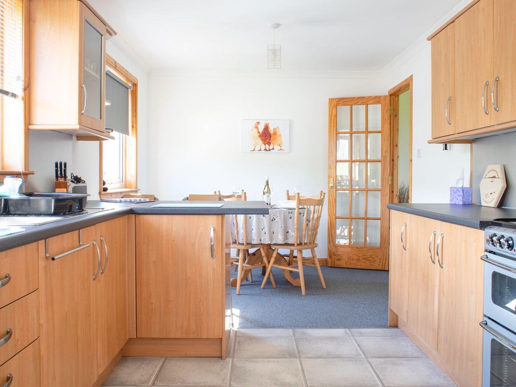 4-room cottage 99 m2. Comfortable and cosy furnishings: lounge with digital TV and DVD. 1 double bedroom with 1 double bed and shower/WC. 1 room with 2 beds. 1 room with 1 bed. Kitchen (oven, 4 ceramic glass hob hotplates, toaster, kettle, microwave, freezer) with dining table. Bath/WC. Oil heating. Terrace furniture. Very beautiful view of the sea. Facilities: washing machine, children's high chair, baby cot for up to 2 year olds. Internet (WiFi). Parking (2 cars) at the house. Please note: non-smoking house. TV only EN. Smoke alarm, fire extinguisher. Strictly No pets as it's a working croft, owner has sheep in the fields surrounding the cottage. HI-30250-F
