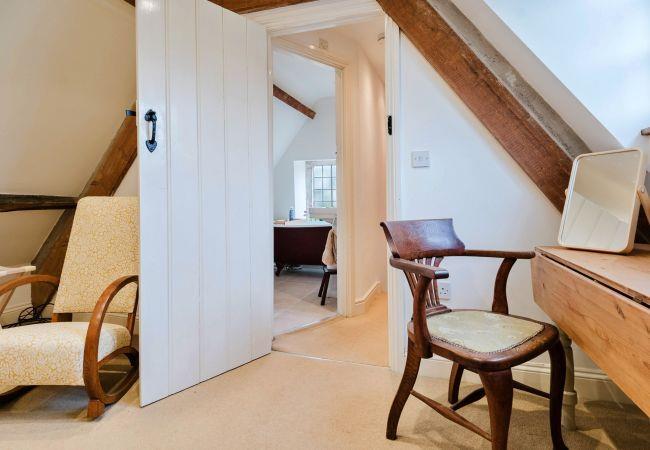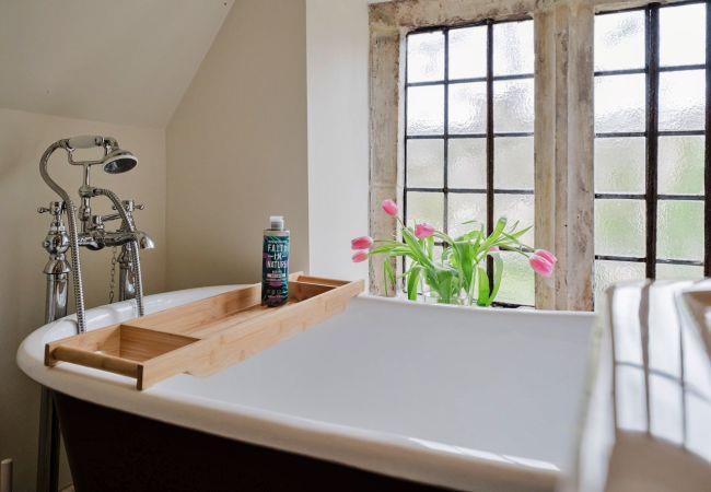 Though compact, the cottage is thoughtfully designed and features a tastefully decorated master bedroom with a comfortable double bed. The modern bathroom offers a tranquil retreat after a day of exploring the Cotswolds, complete with a roll-top bath, basin, and WC.