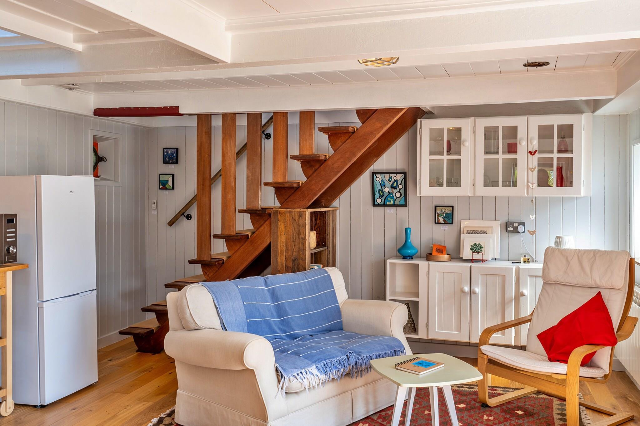 Discover the charm of The Watchtower at Western Watch, a unique pet-friendly retreat perched in the rugged beauty of Pendeen, Cornwall. This historic, converted watchtower offers breathtaking panoramic views over rolling fields, out to the sea and the iconic Pendeen Lighthouse. Originally a maritime granite barn, it was transformed by local ship's radio operator William Waters, who infused the space with authentic maritime touches like portholes, ship parts, and vintage radios, creating a captivating seafaring atmosphere. Inside, you'll find a cozy open-plan living area with a kitchenette, perfect for relaxing after days spent exploring Cornwall’s dramatic coastline, with your furry companion by your side. Upstairs, a charming double bedroom with low beams leads to the ‘Lookout,’ where you can step out onto the wraparound balcony. Savor your morning coffee or evening wine while soaking in the spectacular sea views. The garden, though enclosed, requires supervision for dogs, and offers outdoor seating and expansive lawns to enjoy the fresh coastal air. Just a mile downhill, the white lighthouse of Pendeen Watch beckons for scenic walks, and nearby beaches like Beach Cove and Portheras Cove are perfect for swimming, sunbathing, and discovering Cornwall’s hidden coastal gems. Throughout the tower, art lover and printmaker Angela Annesley’s collection adorns the walls, offering a unique glimpse into her creative world. Guests enjoy exclusive access to her artworks, with the option to purchase at discounted prices. Please note the traditional open tread stairs and sloped ceilings may not suit everyone, and children are not accepted. One well-behaved dog is welcome, providing the perfect escape for nature-loving pet owners. For larger groups, an additional property on-site can accommodate up to six guests. Whether seeking tranquility or artistic inspiration, The Watchtower promises an unforgettable Cornish adventure.