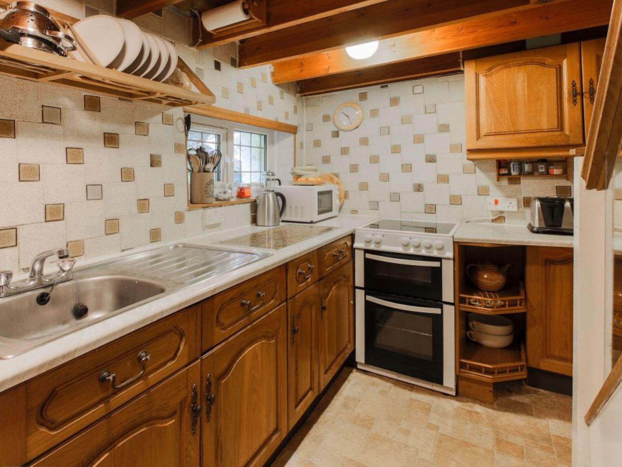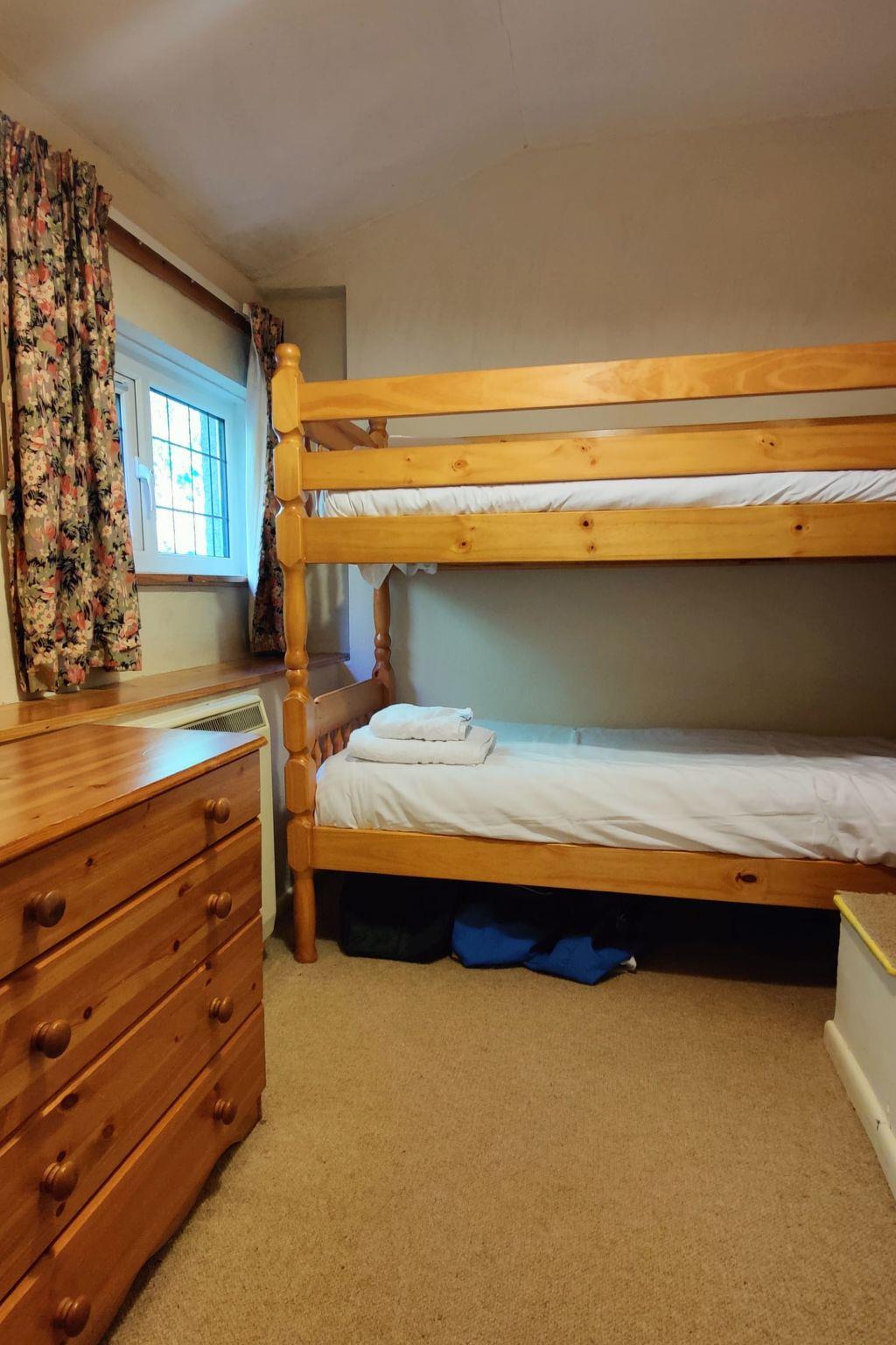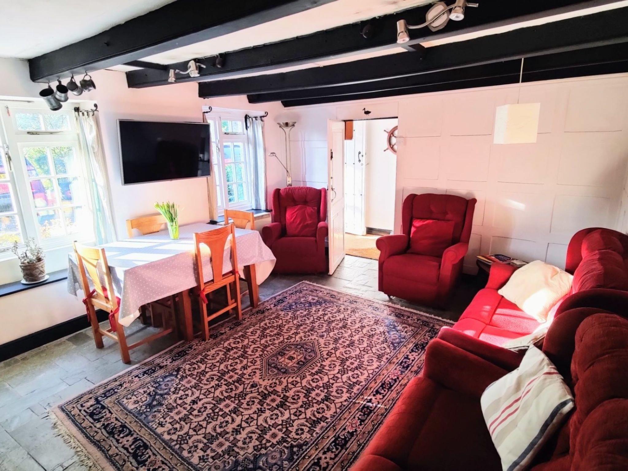 "The Old Inn", 4-room cottage. Practical and cosy furnishings: open living/dining room with TV. Kitchen (oven, dishwasher, 4 ceramic glass hob hotplates, toaster, kettle, microwave, grill). Sep. WC. Upper floor: 1 double bedroom with 2 beds (90 cm, length 190 cm). 1 room with 1 x 2 bunk beds (90 cm, length 190 cm). 1 double bedroom with 1 double bed. Shower/WC. Heating. Facilities: washing machine.