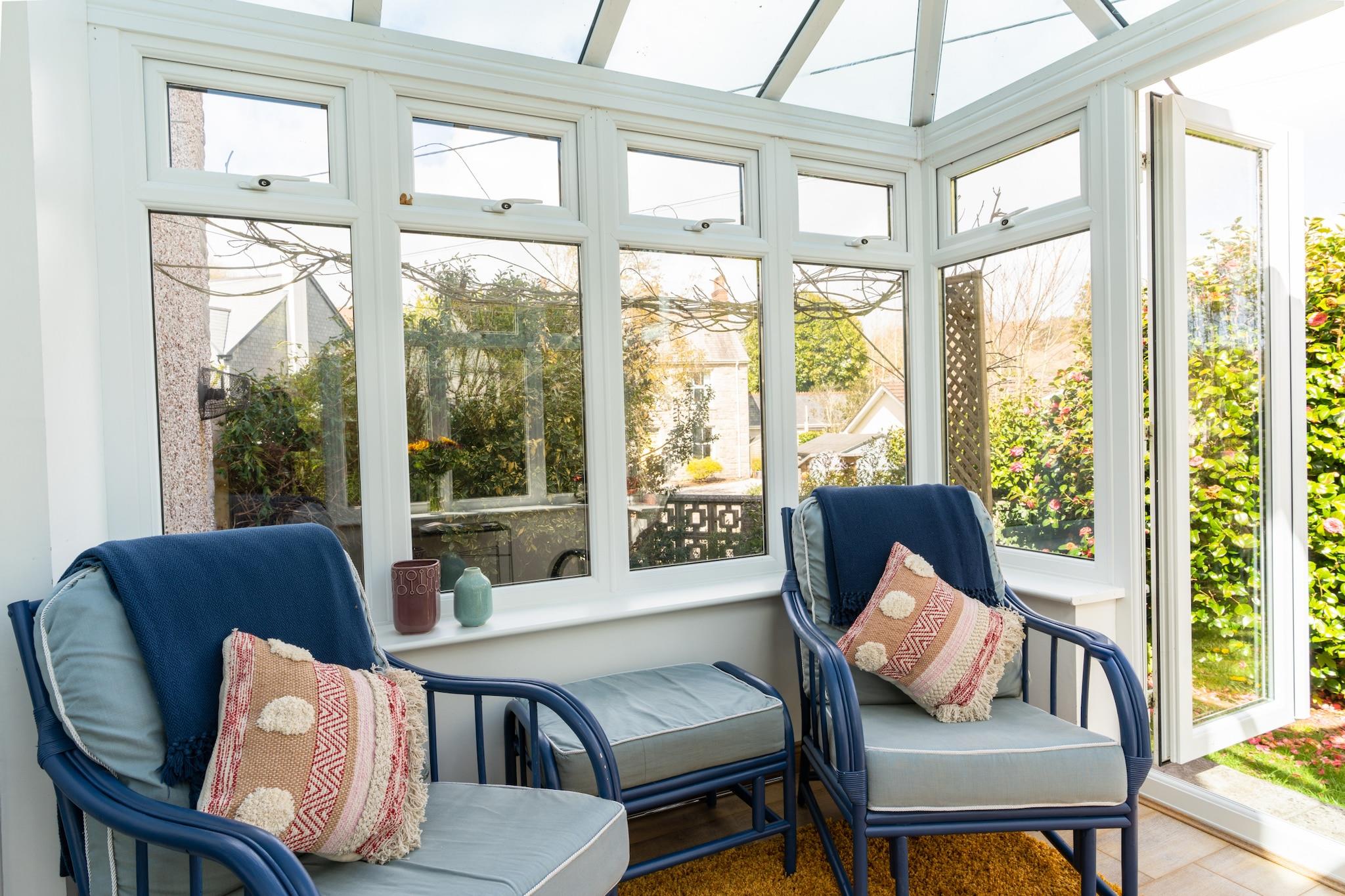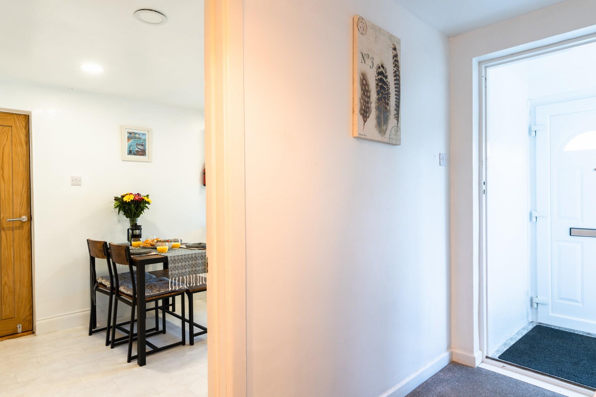 This delightful ground-floor holiday apartment in the peaceful village of Polgooth offers a relaxing retreat with two comfortable bedrooms, accommodating up to four guests. The master bedroom features a king-size bed, while the second bedroom includes two single beds. The property is pet-friendly, allowing dogs to stay at no extra charge, though pets must stay off the beds and not be left unattended. The spacious living room is equipped with two sofas, a smart TV with streaming platforms, and patio doors leading to a sunny conservatory that overlooks the garden. A small private patio area with garden furniture provides a perfect spot to unwind outdoors. Situated just a couple of miles inland from the stunning beaches and harbors of Cornwall’s south coast, the apartment is ideally located for exploring the region’s attractions. The nearby village shop offers local produce, while the dog-friendly Polgooth Inn provides an excellent pub meal. A 10-minute drive brings you to Mevagissey, Cornwall's second-largest fishing port, known for its independent shops and cafes. Other local attractions include the Eden Project, The Lost Gardens of Heligan, and the historic Charlestown port. With easy access to the South West Coast Path and a variety of scenic beaches, this location is perfect for those seeking adventure or relaxation. The apartment’s fully equipped kitchen includes modern appliances like a fridge, freezer, dishwasher, and oven, making it easy to prepare meals during your stay. The contemporary bathroom features a rainfall showerhead, heated towel rail, and modern fittings.