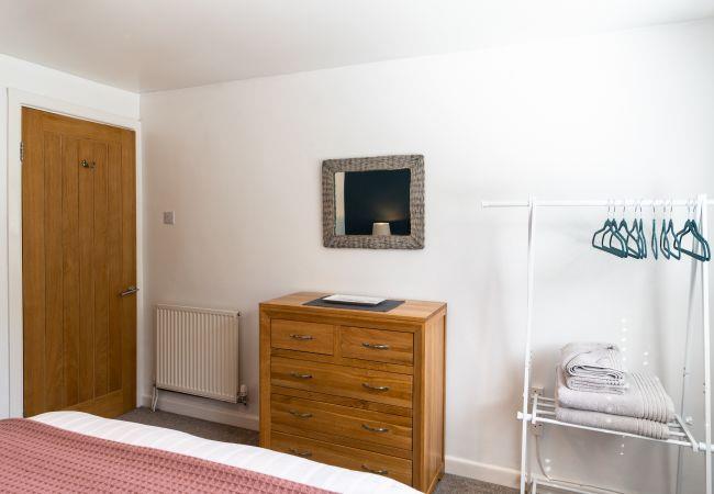 The bedrooms are light and airy, with the master having a king-size bed and the second room having two singles. The bathroom is fully tiled and contemporary in style, with a shower enclosure with rainfall showerhead, heated towel rail, basin and close-coupled toilet. There is a bed-rail available for use if needed.