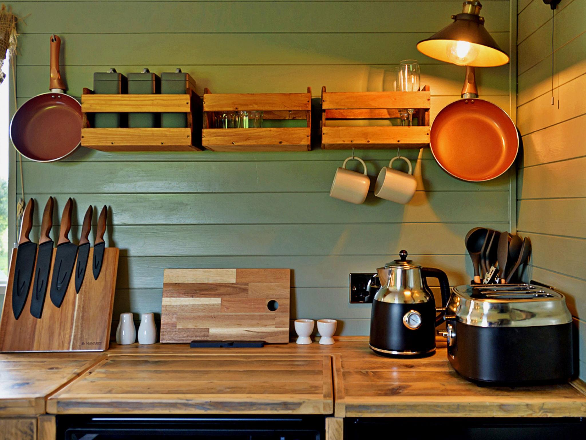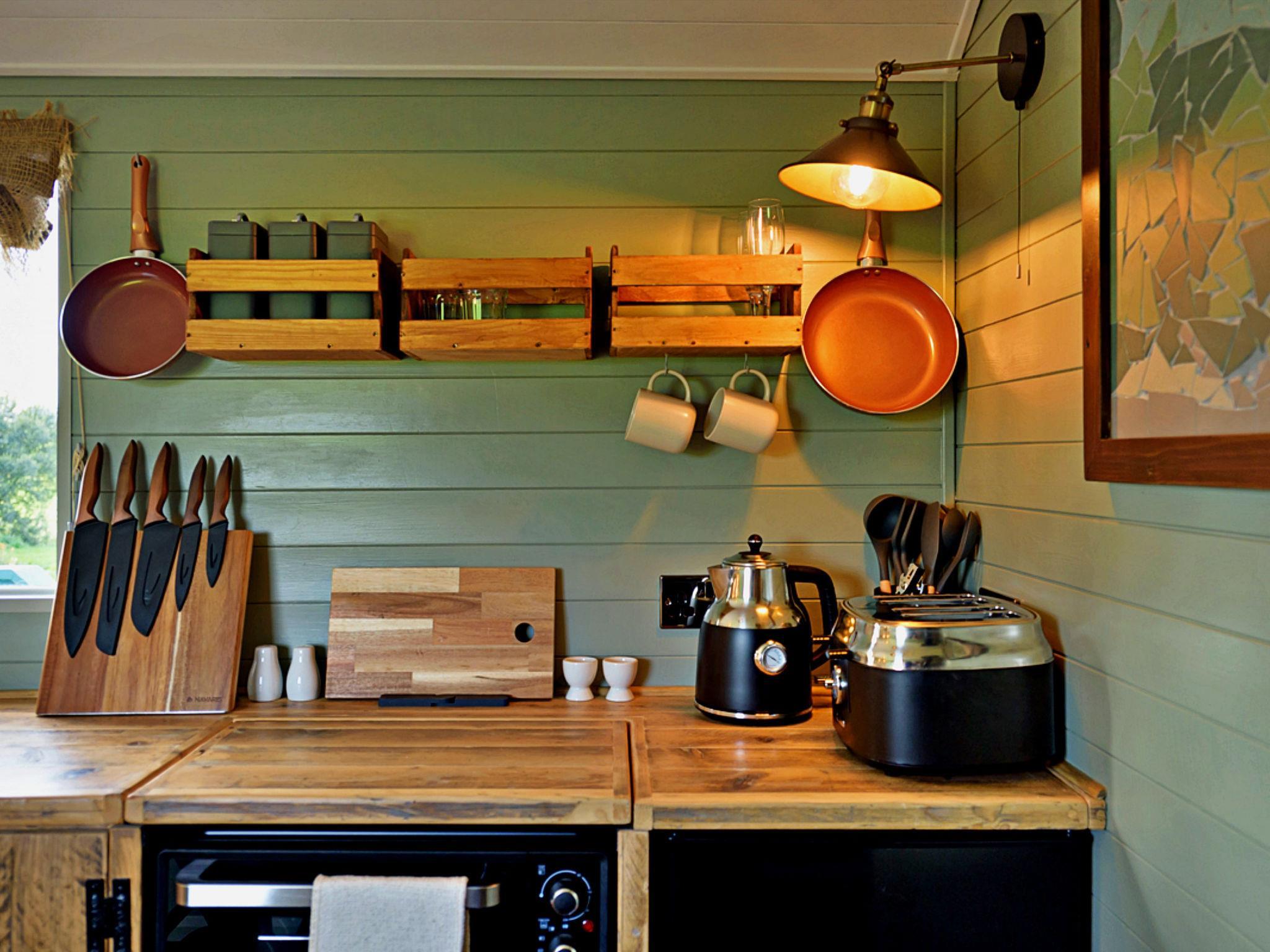 "'Joan' Shepherds Hut", 2-room chalet 30 m2. Object suitable for 2 adults. Living room with open-hearth fireplace. 1 room with 1 double bed. Kitchen (oven, toaster, kettle, freezer). Shower/WC. Barbecue. Parking (1 car). Please note: non-smokers only. 1 pet/ dog allowed.