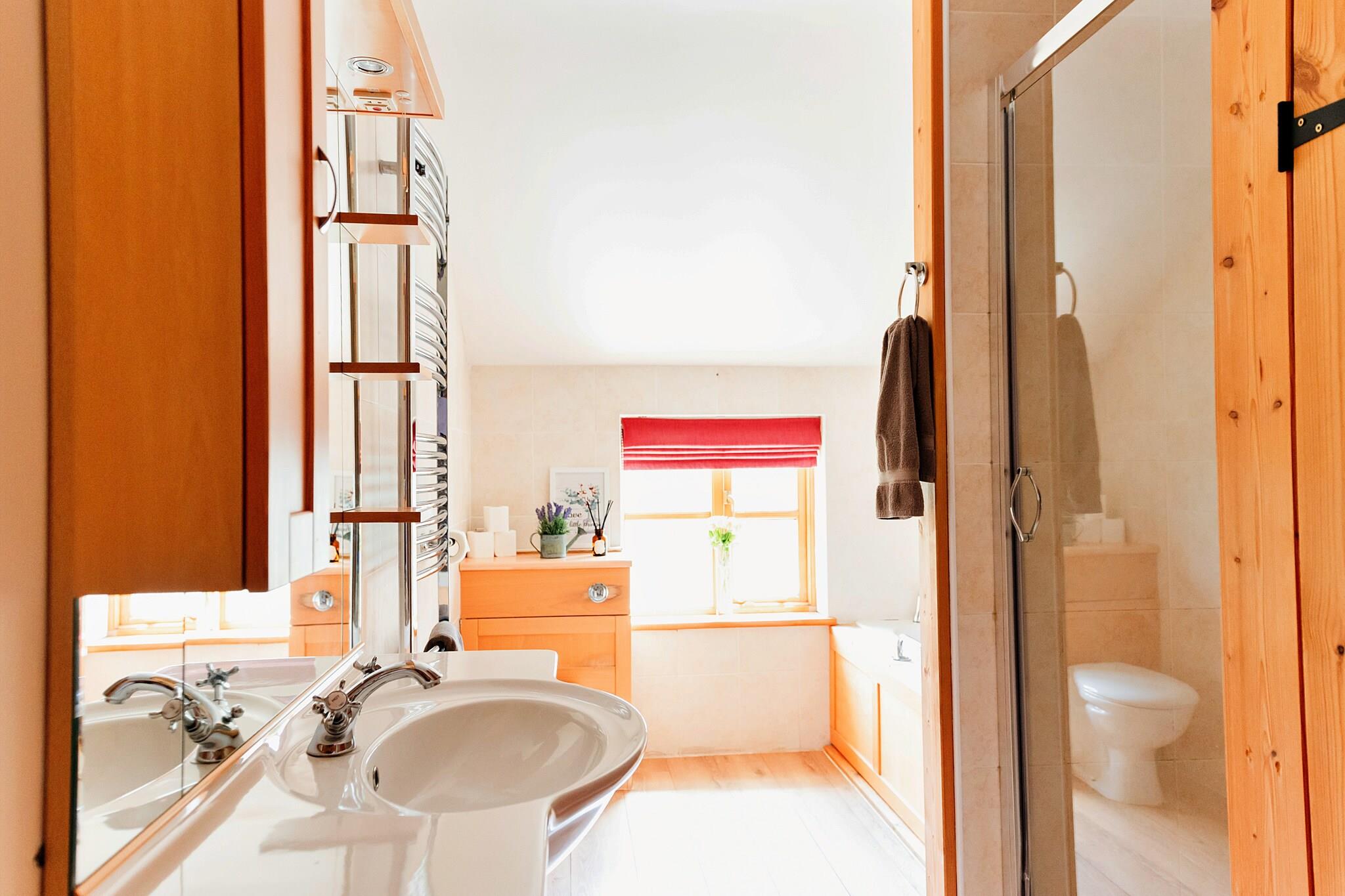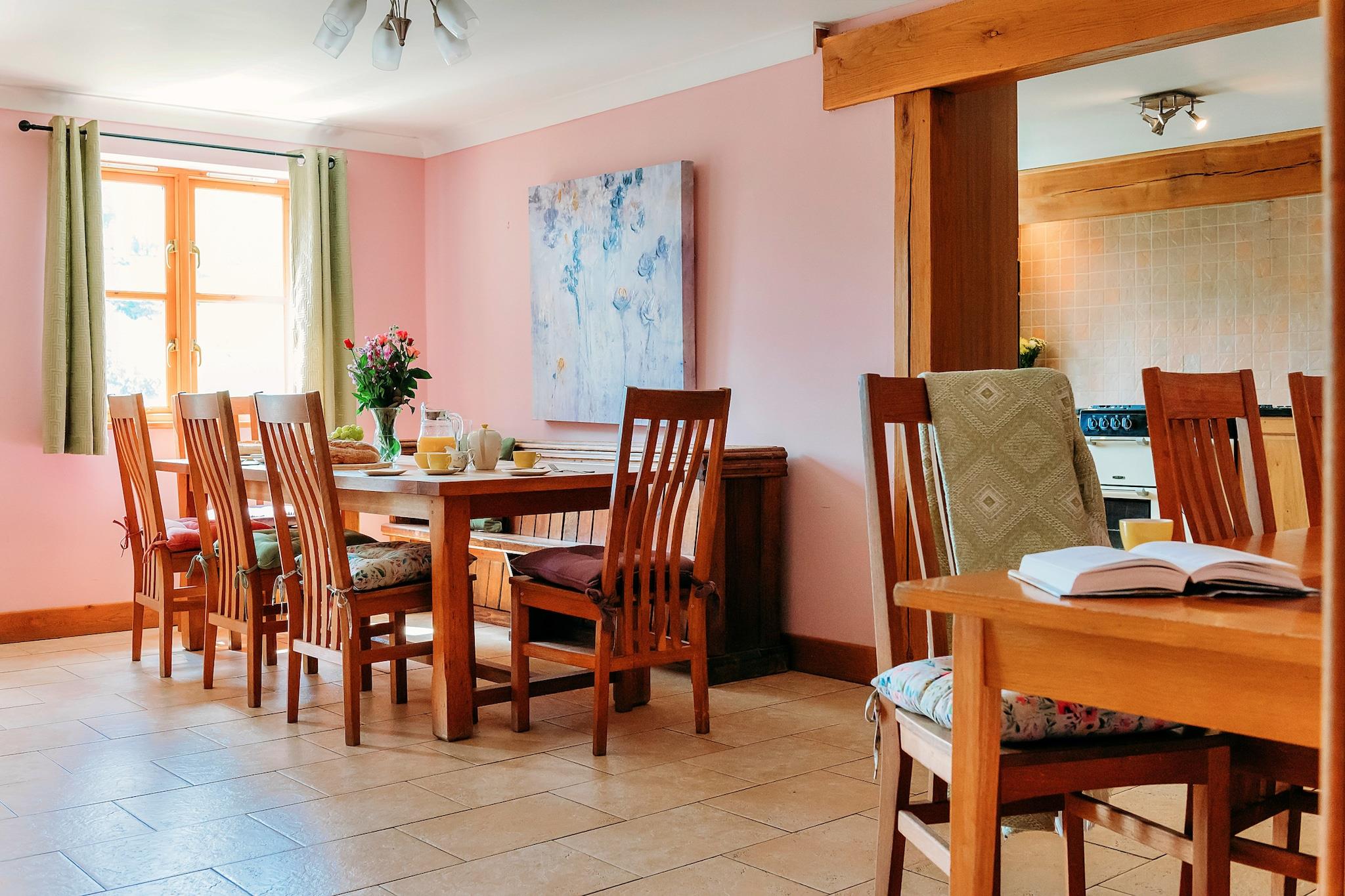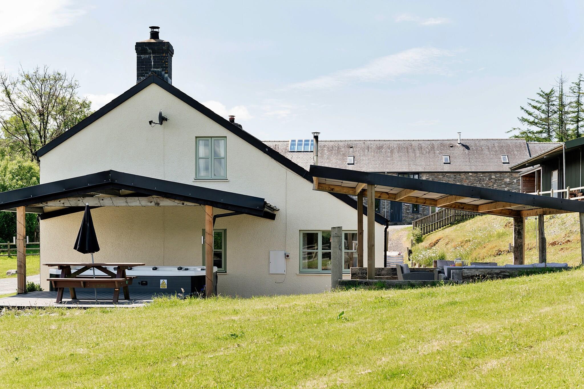 This inviting and spacious cottage accommodates up to 12 guests, offering five well-appointed bedrooms with flexible sleeping arrangements, including Super King-sized beds, twin beds, and single beds. The cottage is pet-friendly, allowing up to two dogs to join you during your stay. The living room boasts a comfortable sofa and large windows that frame beautiful countryside views. Additionally, some bedrooms offer private balconies, providing the perfect spot to relax. Complimentary Wi-Fi is available throughout the property, ensuring guests stay connected. Nestled in the picturesque Welsh countryside, the cottage is within easy reach of Brecon Beacons National Park, offering stunning walking trails and outdoor adventures. The nearby village of Rhydyfelin features charming cafes, shops, and local markets, perfect for exploring and sampling Welsh cuisine. Additionally, major travel hubs like Cardiff Airport and Aberystwyth train station are just a short drive away, making the cottage easily accessible for both local and international visitors. The cottage is equipped with a fully functional kitchen, including modern appliances such as a dishwasher, oven, and fridge, perfect for preparing home-cooked meals. The property also features well-maintained bathrooms, some with en suite wet rooms, adding to the overall convenience and comfort. Central heating ensures a cozy atmosphere year-round, providing a welcoming retreat for all guests.