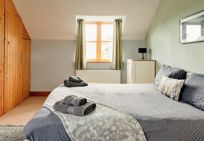Bedroom 1 – Ground Floor: Super King bed (zip & link, twin upon request), accessible wet room. French doors lead to a level path around the house. Wheelchair accessible with a circular ramp from outside. (Sleeps 2)