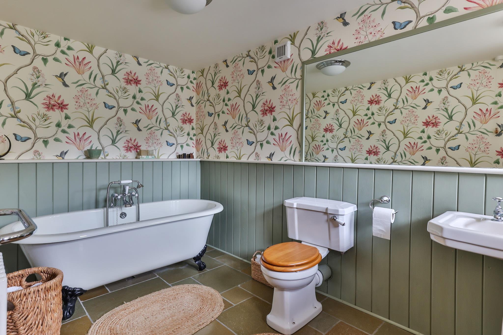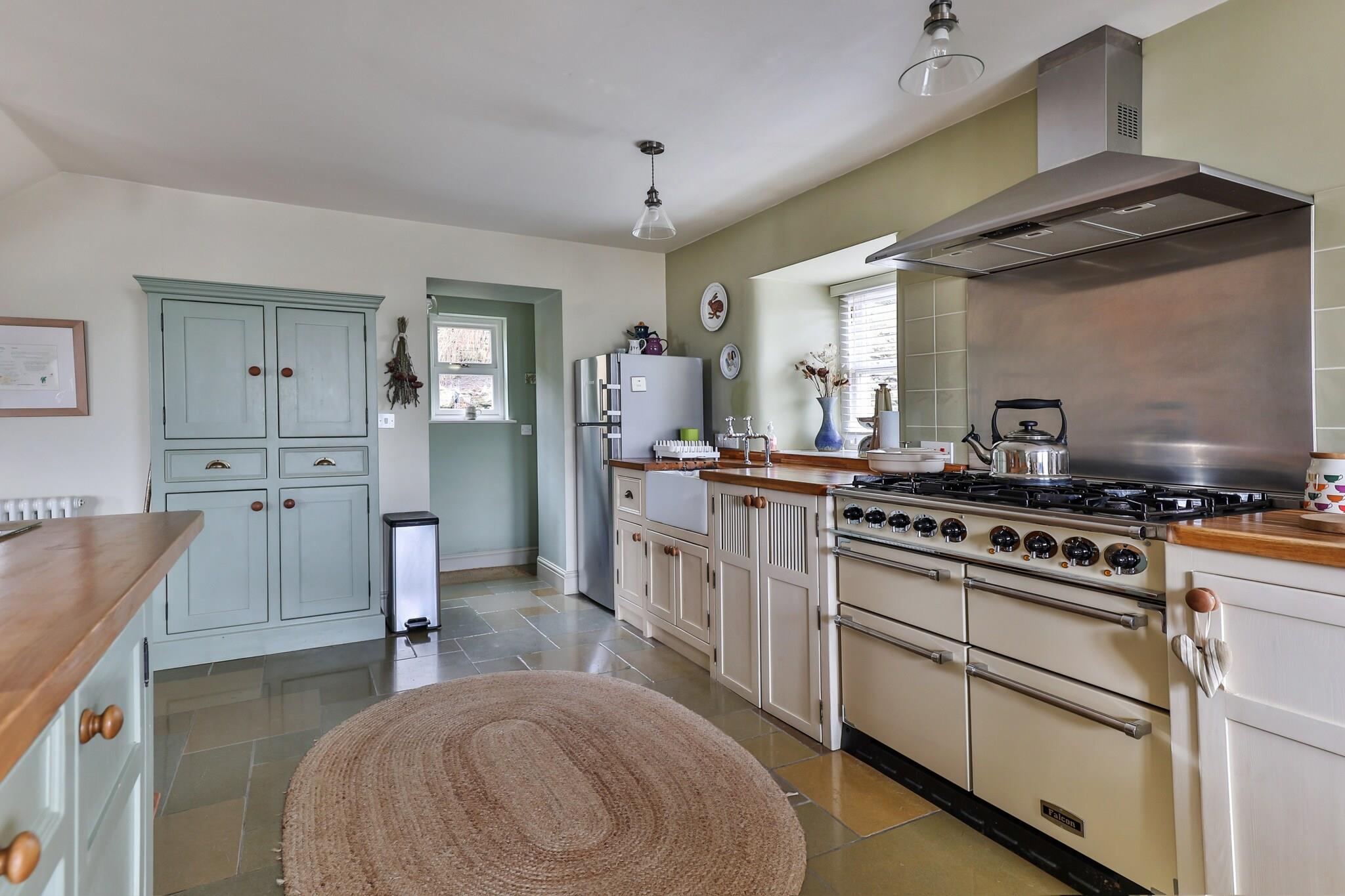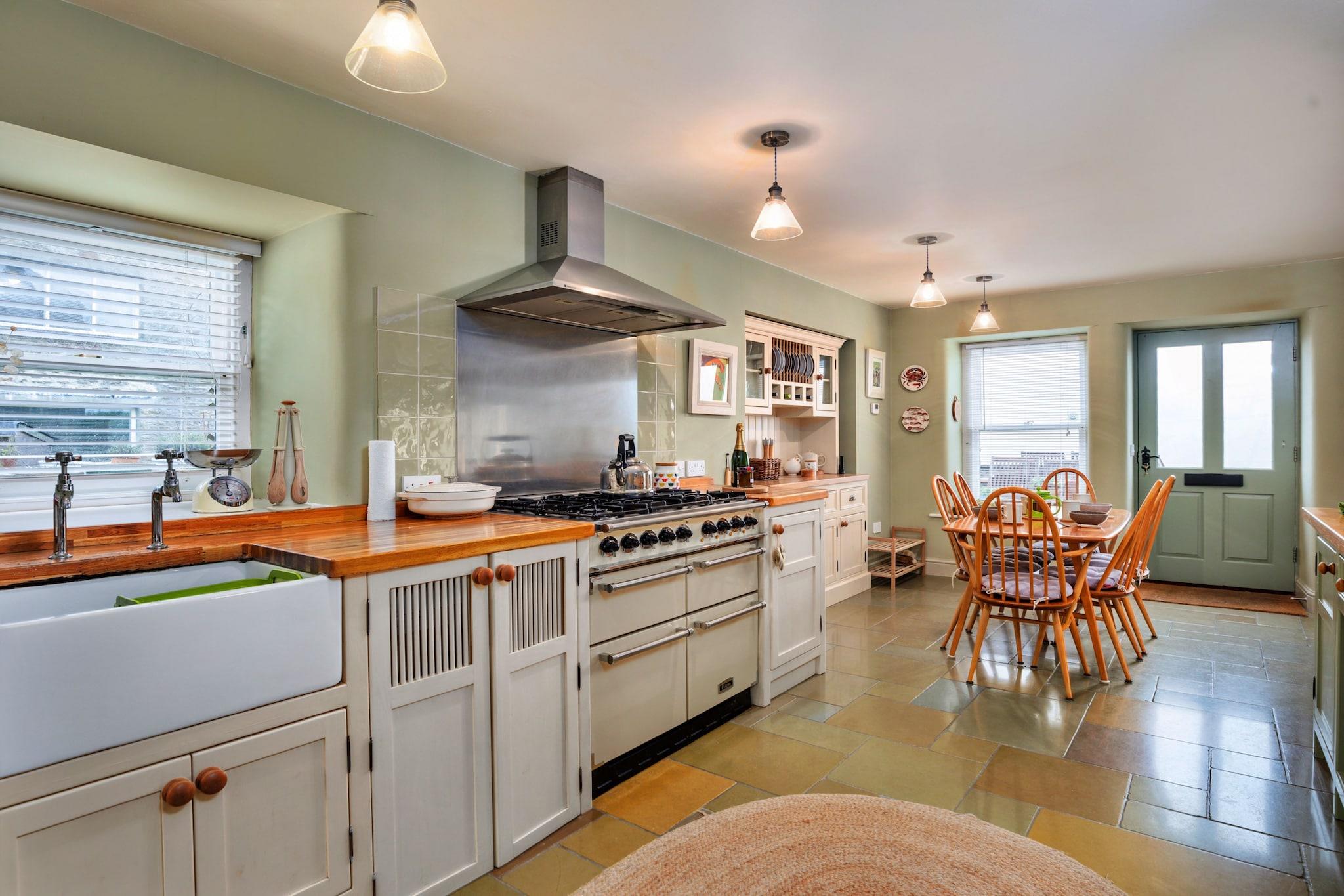 This charming and spacious holiday home offers comfortable accommodations for up to six guests, featuring three well-appointed bedrooms, including a master bedroom with a super king-size bed. The property is pet-friendly, allowing dogs to join guests for a stay, though they must stay off furniture and out of the bedrooms. Guests can enjoy a cozy living room with comfortable seating, perfect for relaxing. While there isn’t a balcony, outdoor spaces with seating are available for enjoying the surrounding views. Additional services, including a high chair and cot, are available on request. Guests can also opt for optional services like accidental damage cover or pet accommodations. The property is ideally located in a peaceful area, with a charming country pub next door serving delicious meals and local drinks. The nearest town is just a short drive away, offering a variety of shops, cafes, and a bakery for all your essentials. For those interested in outdoor activities, several scenic hiking and cycling paths are right at the doorstep, with easy access to the stunning landscapes of the nearby national park. The well-equipped kitchen includes a range-style cooker, a Belfast sink, and plenty of cookware, perfect for preparing meals at home. The property also features a utility room with a washing machine and tumble dryer, ideal for freshening up clothes after a day of outdoor exploration. Two bathrooms, including a luxurious roll-top bath and a modern walk-in shower, ensure guests enjoy comfort throughout their stay. The outdoor space includes a patio area with seating, perfect for relaxing or dining al fresco, and a private driveway for convenient parking.