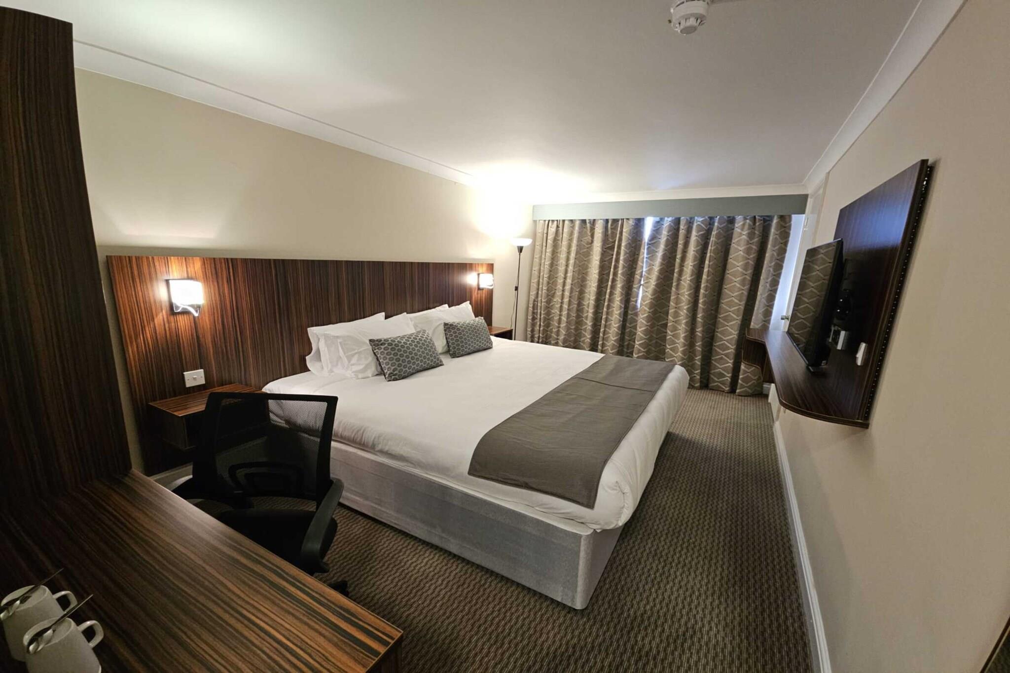 About this property Comfortable Accommodation: The Palms Hotel in Hornchurch offers 3-star comfort with free WiFi throughout the property. Each room includes a private bathroom with a bath or shower, air-conditioning, and a work desk. Convenient Facilities: Guests benefit from free on-site private parking, a tea and coffee maker, electric kettle, and a TV. Additional amenities include a hairdryer, sofa bed, and interconnected rooms. Prime Location: Located 23 km from London City Airport, the hotel is near attractions such as Upminster (3 km), intu Lakeside Shopping Centre (16 km), and Bluewater (23 km).