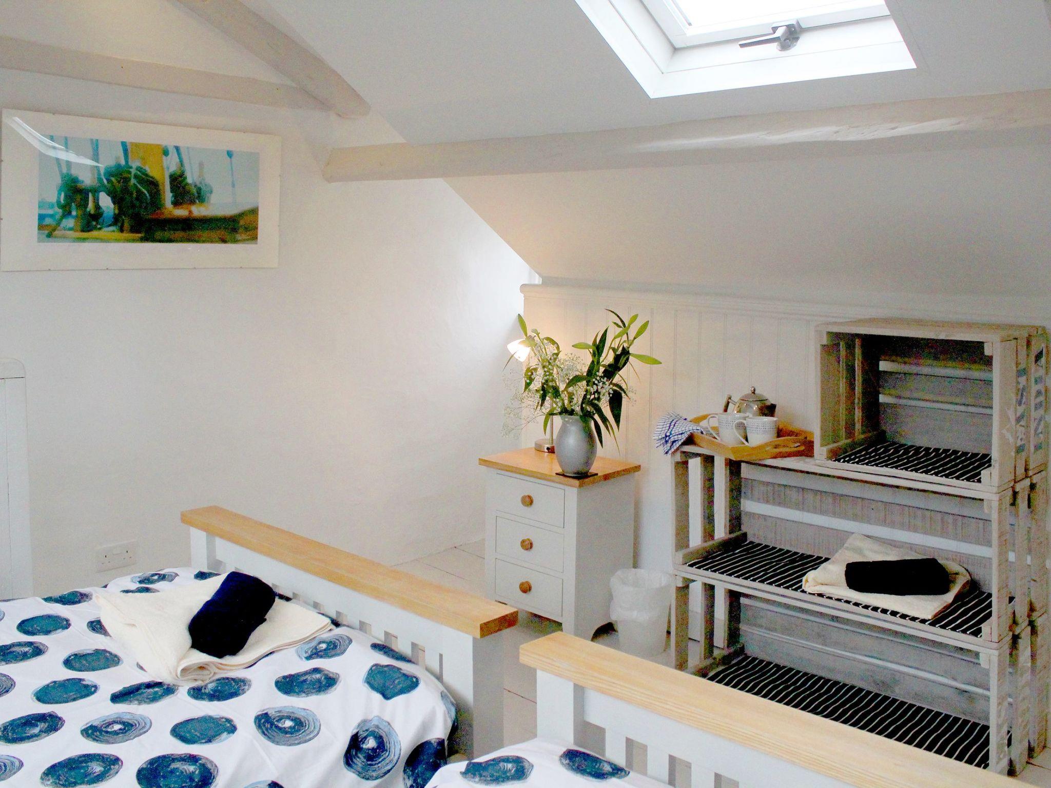 Overlooking the passers by, the master bedroom will nestle your senses in Georgian splendour and calm. Up the narrow winding Dickensian stairs with hints of Oliver Twist, is the attic bedroom called the Crows' Nest. Overlooking the rooftops and among the seagulls, what better way to end the day exhausted from a sunny play on the beach?