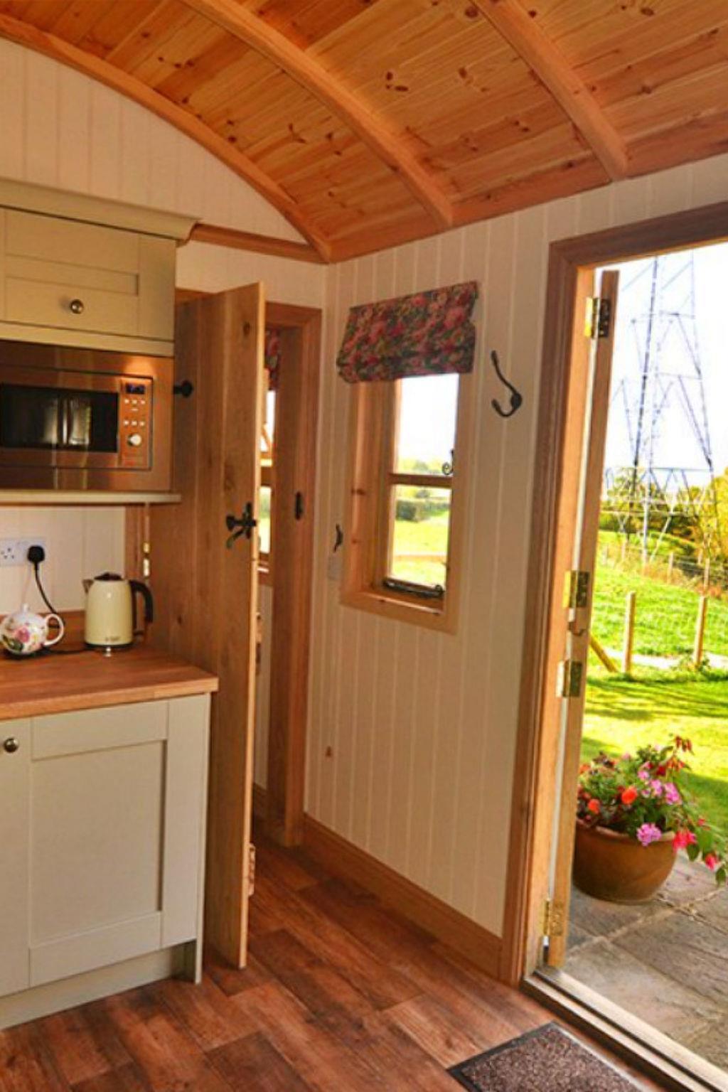 "Shepherd's Lodge at Morrells Wood", 2-room chalet 20 m2. Object suitable for 2 adults. Living room. 1 room with 1 double bed. Kitchen (oven, toaster, kettle, microwave, freezer). Shower/WC. Facilities: washing machine. Internet (WiFi, free). Please note: non-smokers only. Smoke alarm.