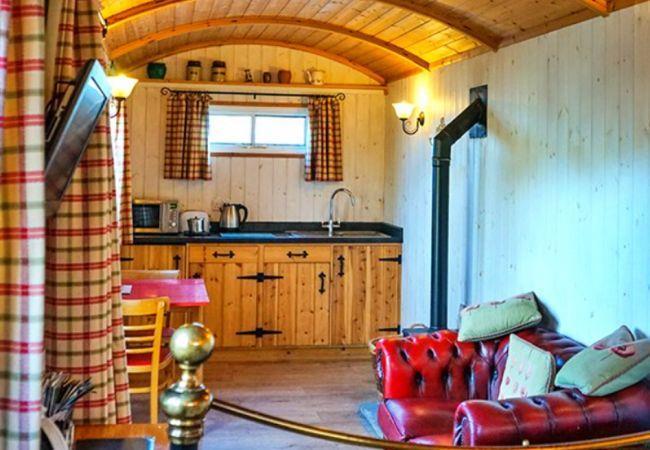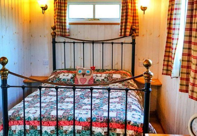 Along with its delightful setting, the accommodation includes an ornate iron framed bed at one end, with the kitchen at the other end. Nestled in-between there’s a relaxing sofa and wood burning stove, perfect for a snug ambiance on even the coldest of nights! The kitchen comes complete with mini oven with dual hotplates to toast, bake, roast or grill, microwave oven and a fridge with freezer compartment.