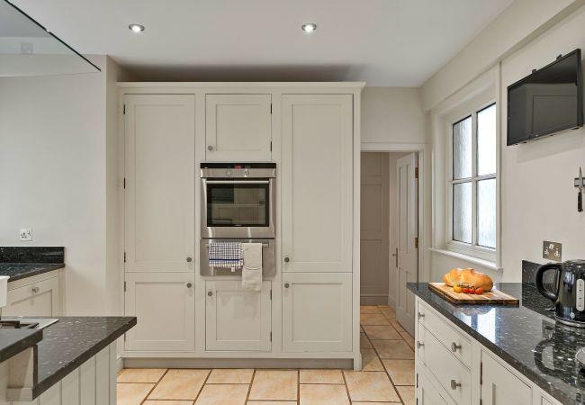 The ground floor welcomes guests with an entrance hall leading to upper floors. The open-plan living area on this level includes a sizable oak dining table for 8 guests, complemented by a comfortable seating area featuring a TV, with Wi-Fi included during your stay. The well-equipped kitchen and a separate utility room enhance the functionality of the space. Off the kitchen, an enclosed patio offers outside seating and storage for bicycles.