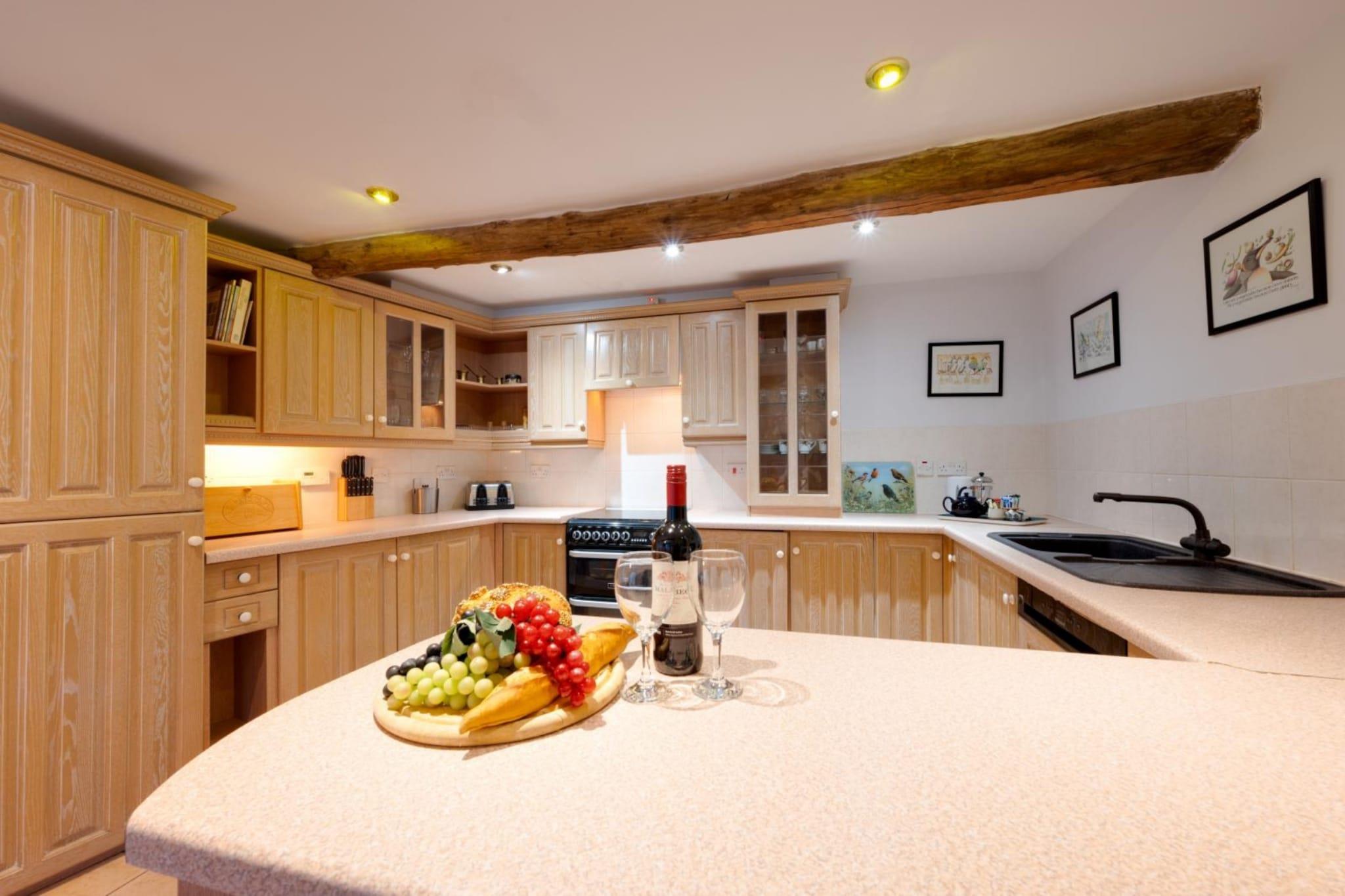 Set amidst 1.5 acres of beautiful, shared gardens, this delightful holiday cottage provides a perfect combination of modern amenities and countryside charm. It is ideal for families and groups, comfortably accommodating up to 8 guests across 4 well-appointed bedrooms. On the ground floor, you'll find a spacious living room equipped with comfortable seating, a Freeview TV, DVD player, and a dining area. The well-equipped kitchen/diner features modern appliances such as a dual-fuel cooker, dishwasher, microwave, fridge/freezer, and a washing machine/tumble dryer, along with a large pine dining table that seats eight, perfect for family meals, with a highchair available for little ones. Upstairs, the master bedroom boasts a 5ft bed and an en-suite shower room, with ample space for a cot. A second double bedroom with a 4ft 6in bed also includes an en-suite shower room. Additionally, there is a twin bedroom with two 3ft beds and a basin, while the bunk room features full-size bunks and a Velux window. A family bathroom completes this level. Guests can enjoy shared access to stunning grounds that include duck ponds, waterfalls, barbecue areas, and a children's play hut. Well-behaved dogs are welcome, but supervision is required due to free-roaming ducks and chickens. Parking for two cars is available, with extra space nearby if needed. For bookings and more details, please reach out to Finest Retreats.