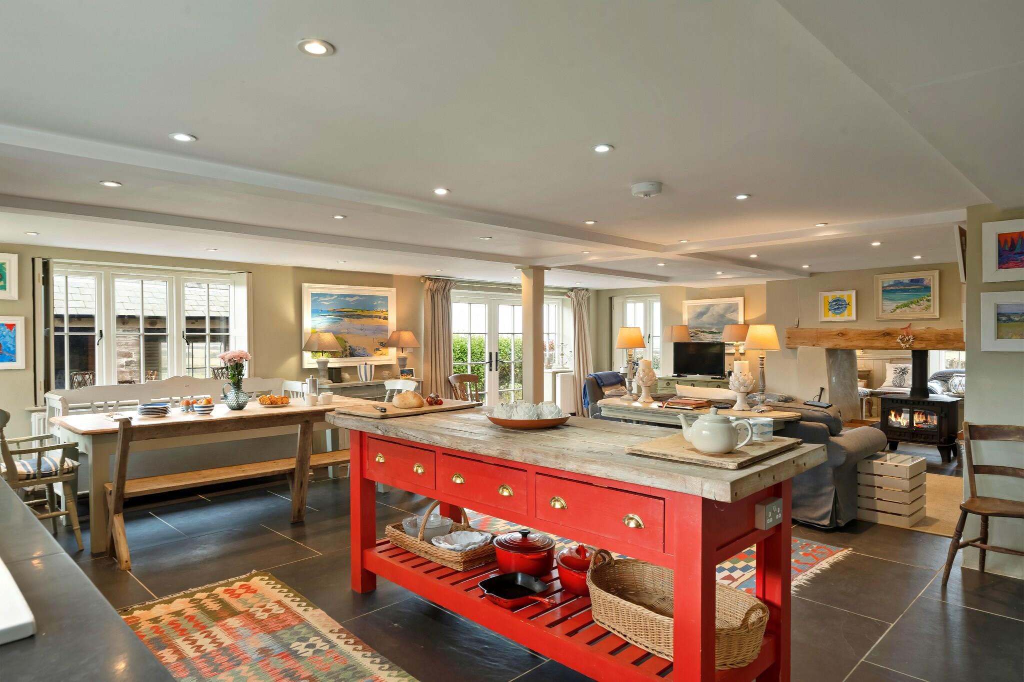 Nestled within the enchanting village of St Eval, this beautifully converted former schoolhouse offers a unique coastal retreat on Cornwall’s rugged shoreline. Just minutes from the golden sands of Mawgan Porth and Porthcothan beaches, the property radiates historical charm while featuring modern comforts that cater to every need. With sea views visible from most rooms, this home provides the perfect backdrop for a tranquil getaway in North Cornwall. Step inside to discover a stylish open-plan living space that encourages gatherings and relaxation. The airy kitchen, dining, and sitting areas flow seamlessly together, where large windows allow sunlight to flood the space while showcasing breathtaking views of the countryside and sea. A double-sided wood-burning stove adds to the warm ambiance, making it the perfect spot to unwind after a day of exploration. For those moments of solitude, an additional sitting room offers a cozy nook for reading or movie nights with family and friends. Comfortably accommodating up to ten guests, the property boasts five inviting bedrooms, all adorned with coastal decor that reflects the stunning surroundings. One ground-floor bedroom with an ensuite offers convenience, while four spacious upstairs bedrooms feature either ensuite facilities or share a family bathroom. Outside, the private garden becomes a serene haven for outdoor dining and entertaining, complete with a sheltered BBQ area for all-weather enjoyment. With local beaches, scenic walking trails, and charming nearby towns, this delightful schoolhouse is the perfect base for your Cornish adventure, providing a comfortable retreat for families and groups seeking relaxation and memorable experiences.