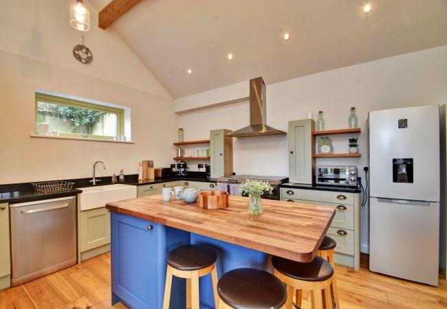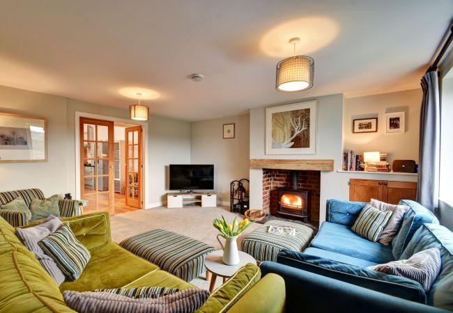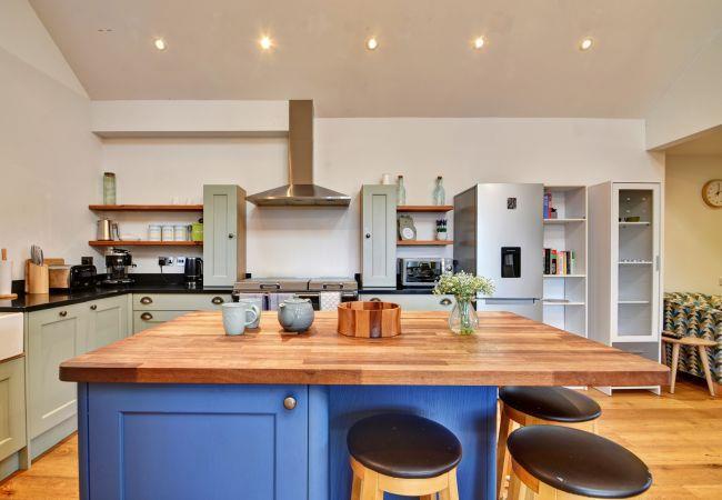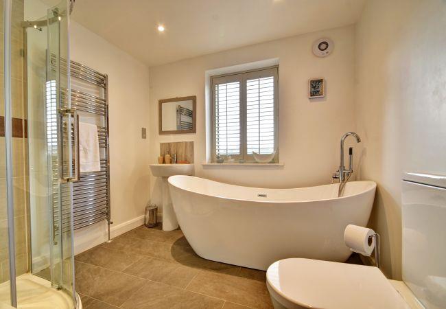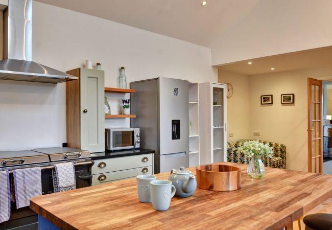 The accommodation is ideal for friends and families and has been carefully furnished and decorated throughout. The spacious living room features a wood burner, creating a warm and inviting space to relax while enjoying a film on the Smart TV. The open-plan kitchen and dining area is well-equipped with an electric range cooker, an American fridge freezer, washer-dryer, dishwasher, coffee machine and bi-fold doors that open onto the garden, allowing guests to make the most of the stunning views.