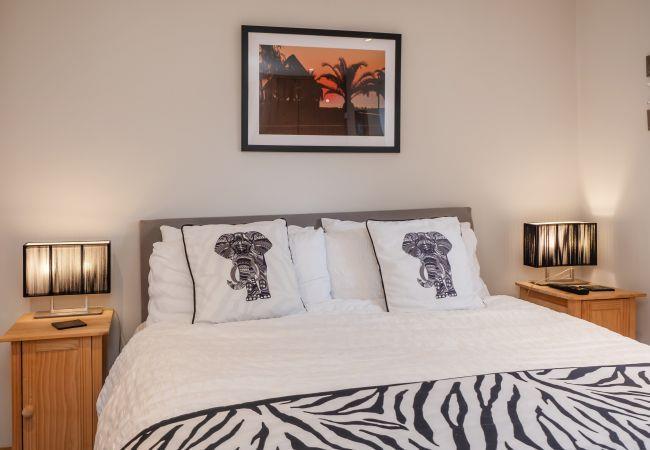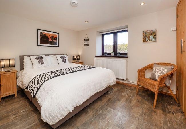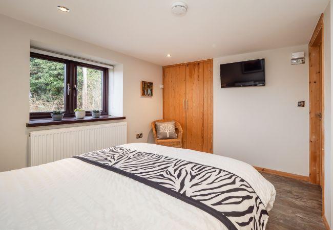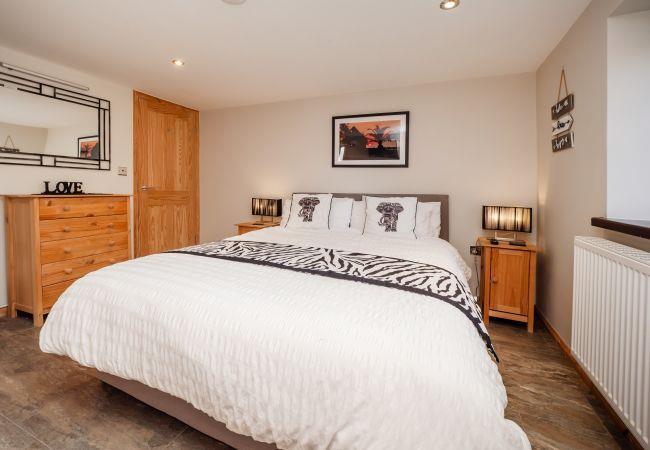 The main ground floor bedroom is furnished with a king-size bed, a large wardrobe, chest of drawers, 32 TV with HDMI and bedside cabinets.