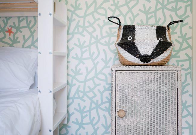 Upstairs, there are three bedrooms, one kingsize, one double and one bunk-bed room suitable for adults or children, all tastefully decorated for a calm and airy feel.