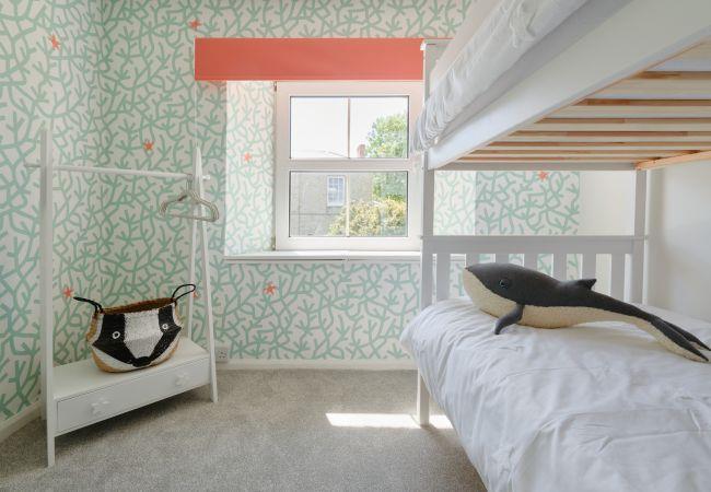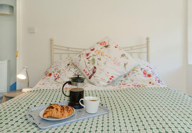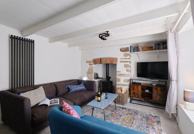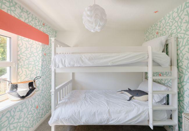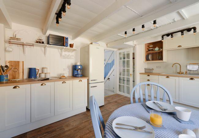 Entering in through the front door of the cottage, you are welcomed into a wonderfully homely living room, with with chic styling, generous sofas to sink into and a feature fireplace boasting a log burner. There are family board games, children's DVDs and even a toy chest to keep the little ones entertained, making this is an ideal space to unwind as a family after a long day of exploring the coast.