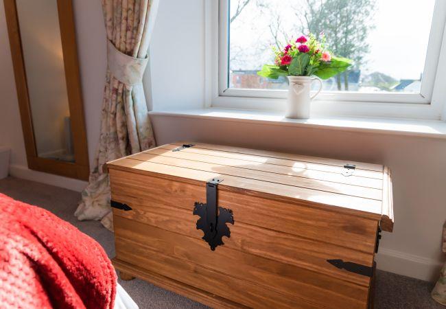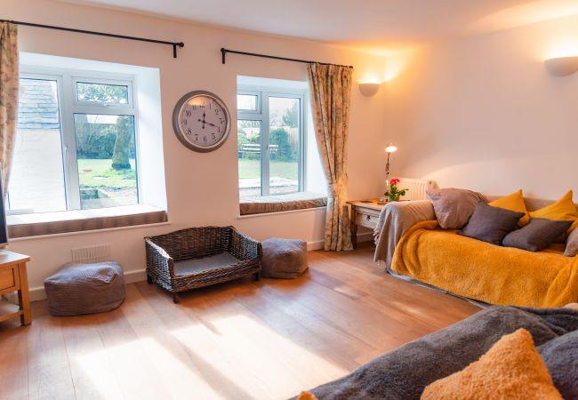 Guests will love the comfortable living room with its garden views, wide window seats and inglenook fireplace. With a working log burner, guests can enjoy the warmth during the autumn and winter nights. The main TV has an Amazon Fire-stick for guests to use, DVD player and various board games. There is also BT Fibre Broadband and a DAB digital radio.