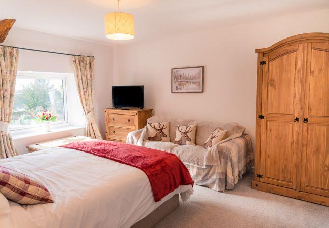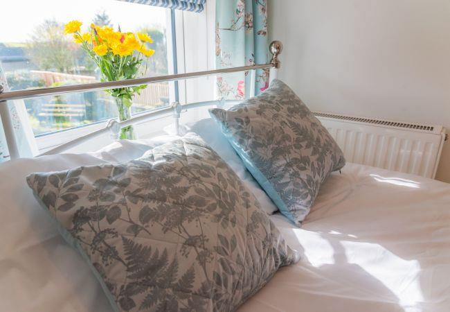 Walking into the spacious hallway through the front door, the kitchen/diner leads off in one direction and the cosy living room in the other. The kitchen has all the appliances and amenities required to cook up a feast on your self-catering holiday including a Nespresso coffee machine, microwave, dishwasher, washing machine and large fridge/freezer. The kitchen has a large farmhouse kitchen table to gather round for your meals.