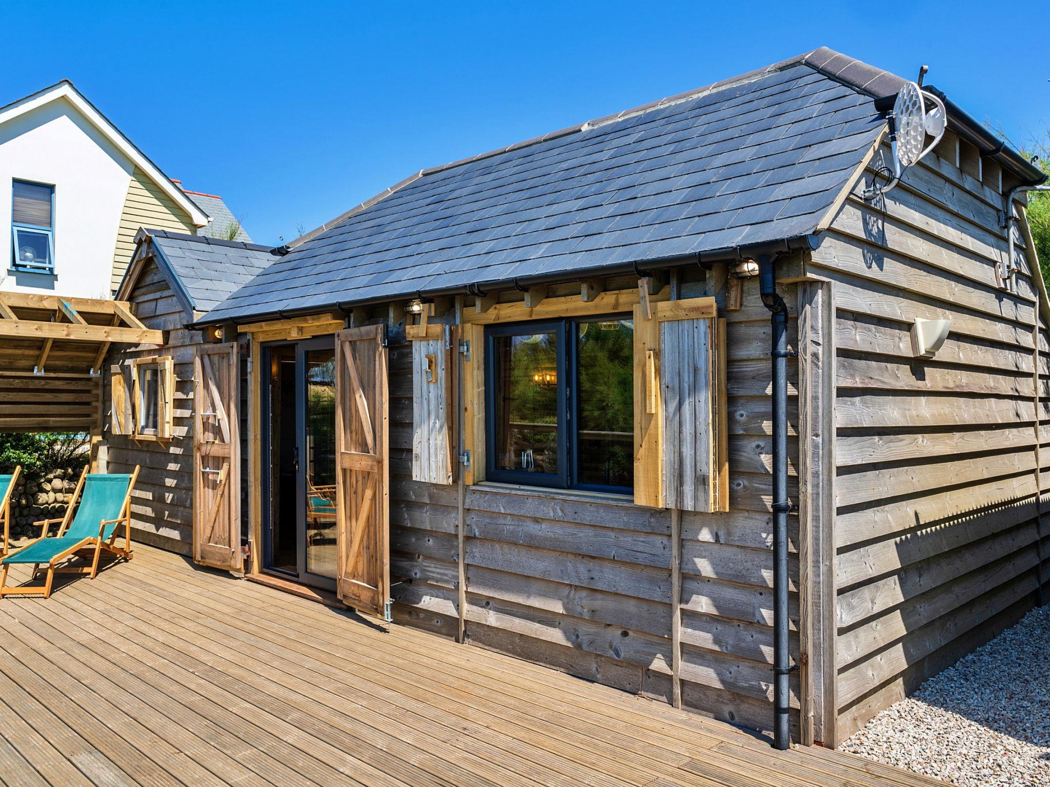 Widemouth Bay: Timber house. Private: garden. Garden furniture.