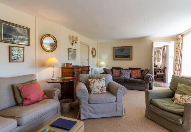 Downstairs, there is a dining room in addition to the kitchen, and a separate living room, generously furnished with comfortable sofa and armchairs.