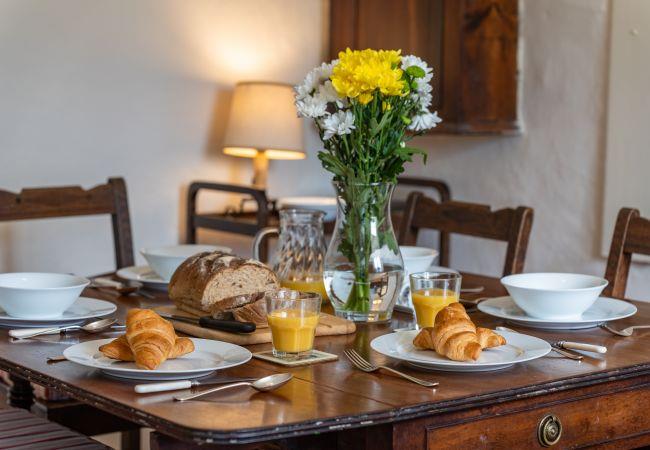 The bedroom layout offers great flexibility for the whole family, with one of the five bedrooms being on the ground floor and having a double bed and its own ensuite bathroom. Upstairs to the first floor, there is another double bedroom, boasting beautiful views out across the valley. There is then a further twin room and two smaller single bedrooms, ideal for children. The main family bathroom is also upstairs, and has a bath with shower attachment. There is also an additional ground floor WC for convenience.